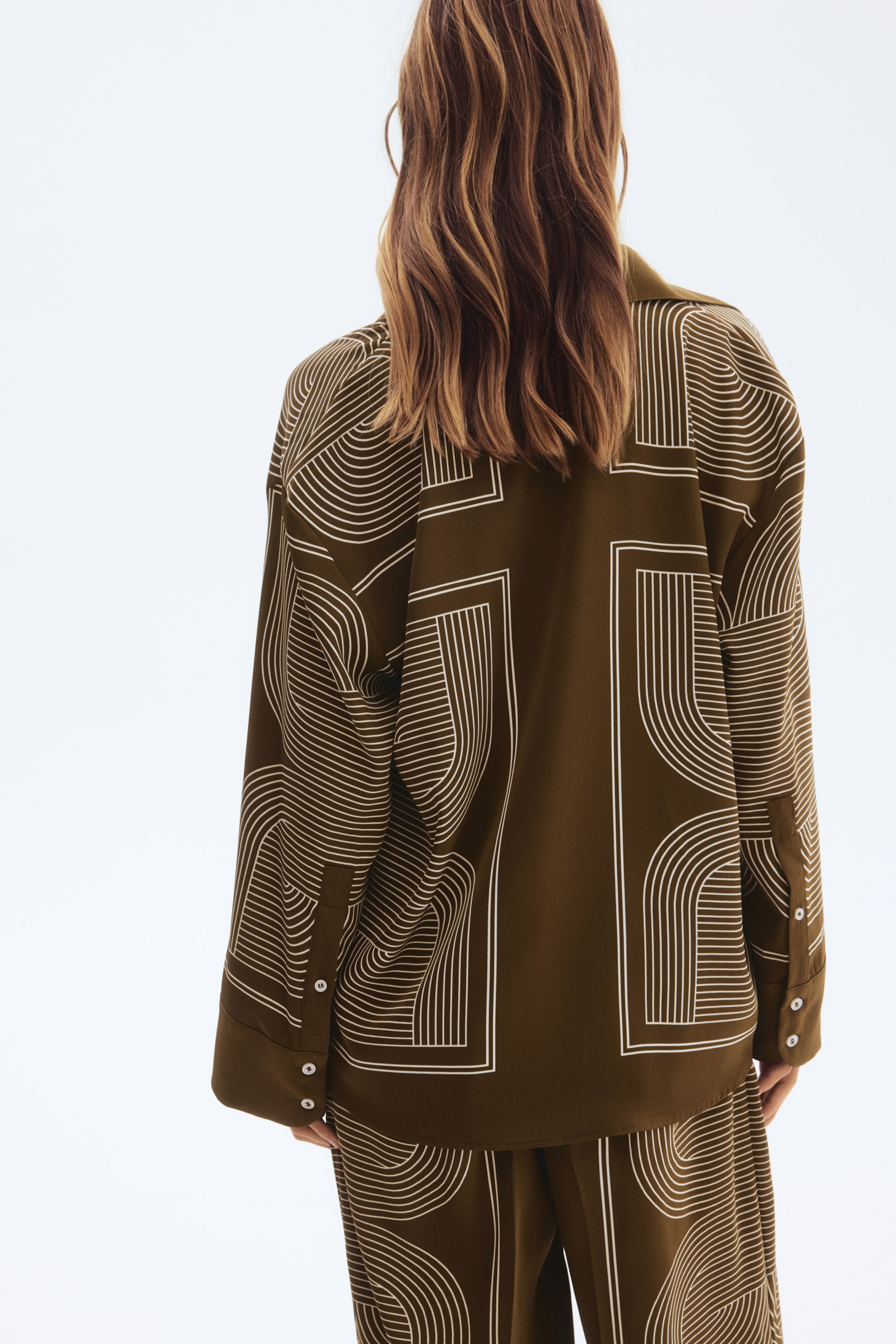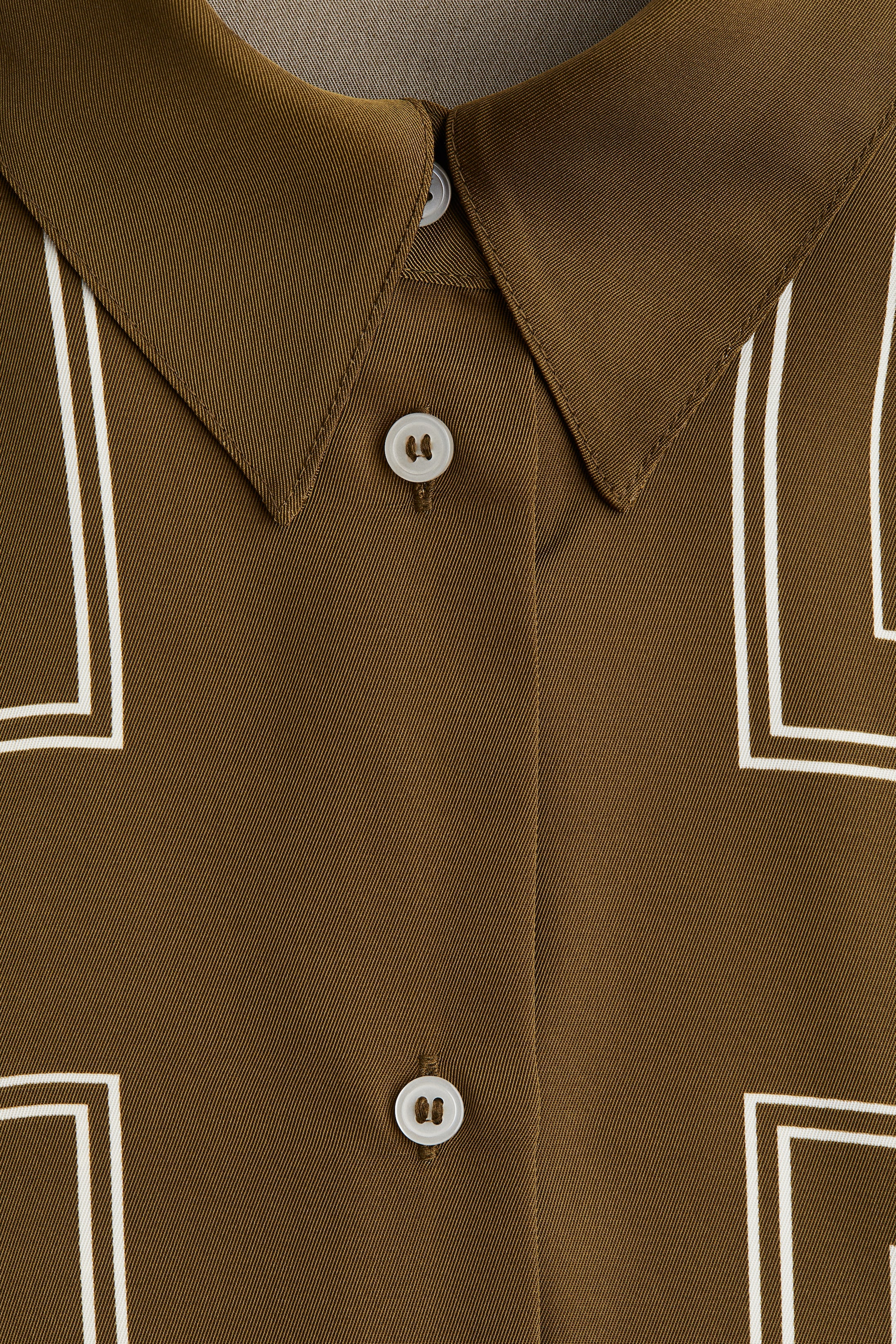 Oversized Twillbluse mit Kragen und Knopfleiste. Überschnittene Schultern und lange Ärmel mit geknöpften Manschetten und einem Knopf am Ärmelschlitz. Gerader Saum.