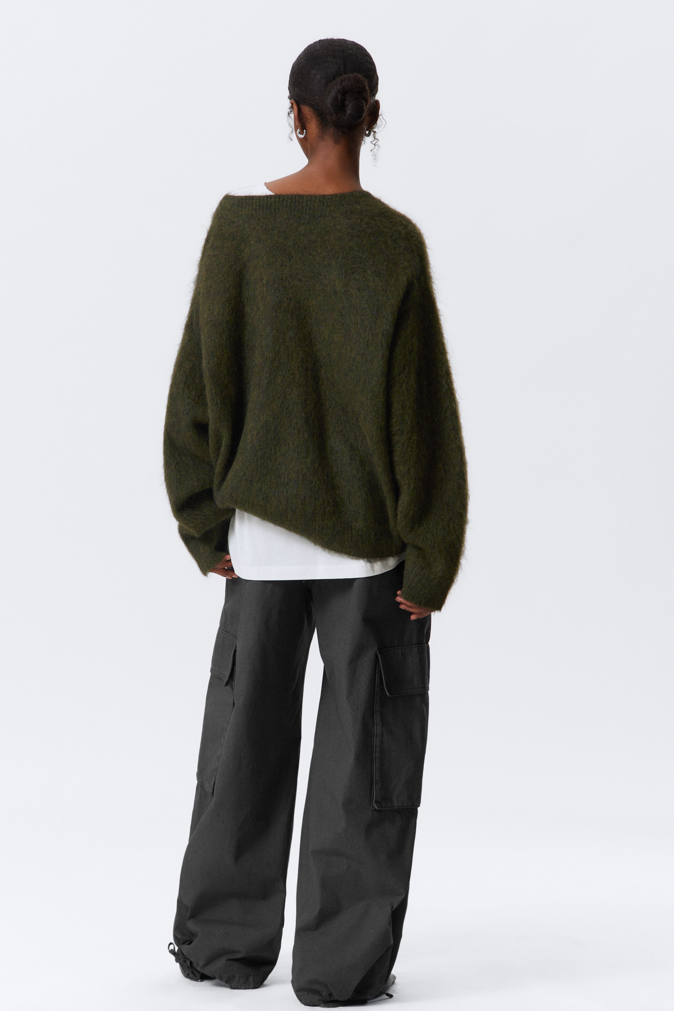 Weiter Cardigan mit V-Ausschnitt aus Mohair-Mix