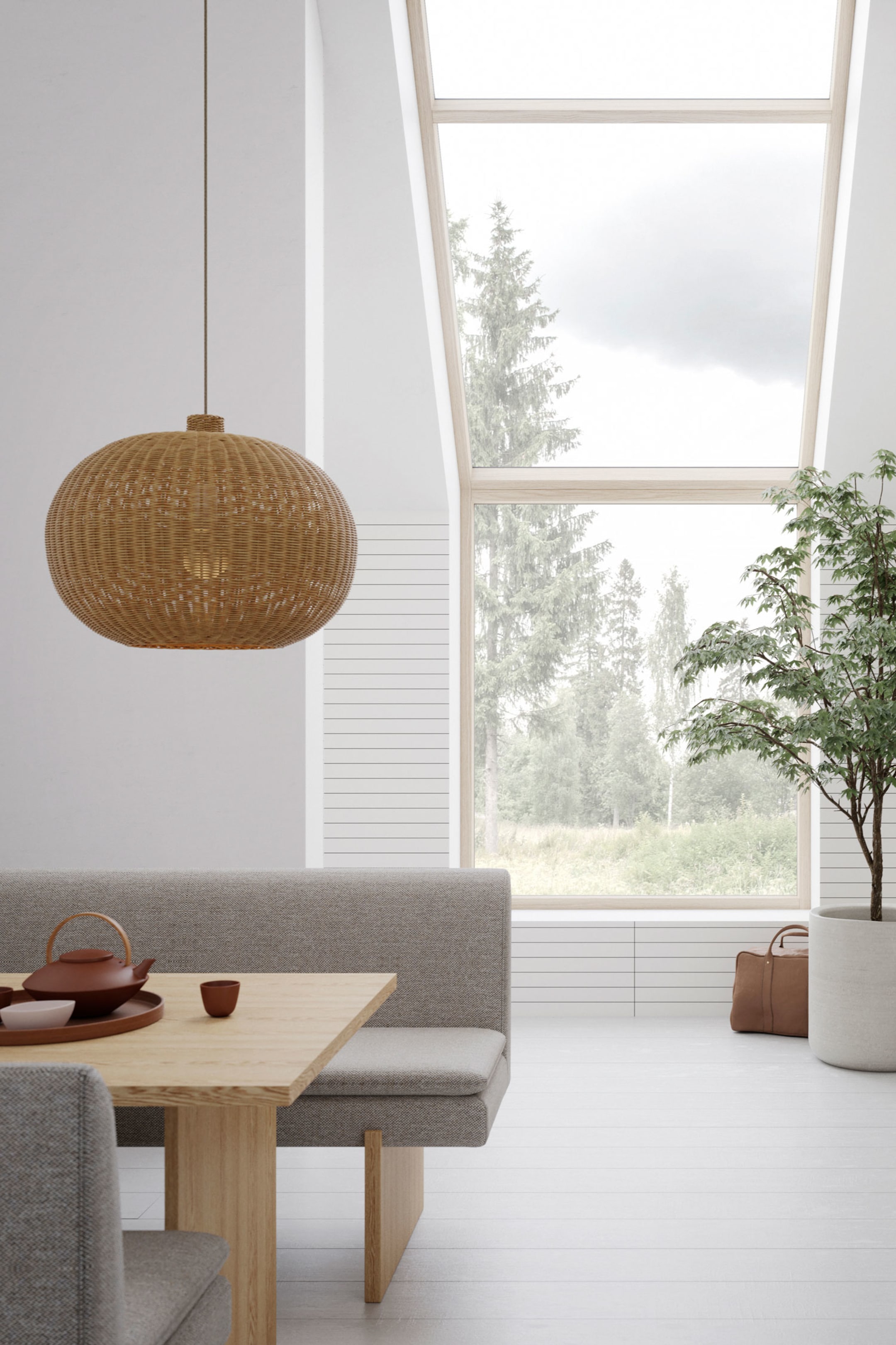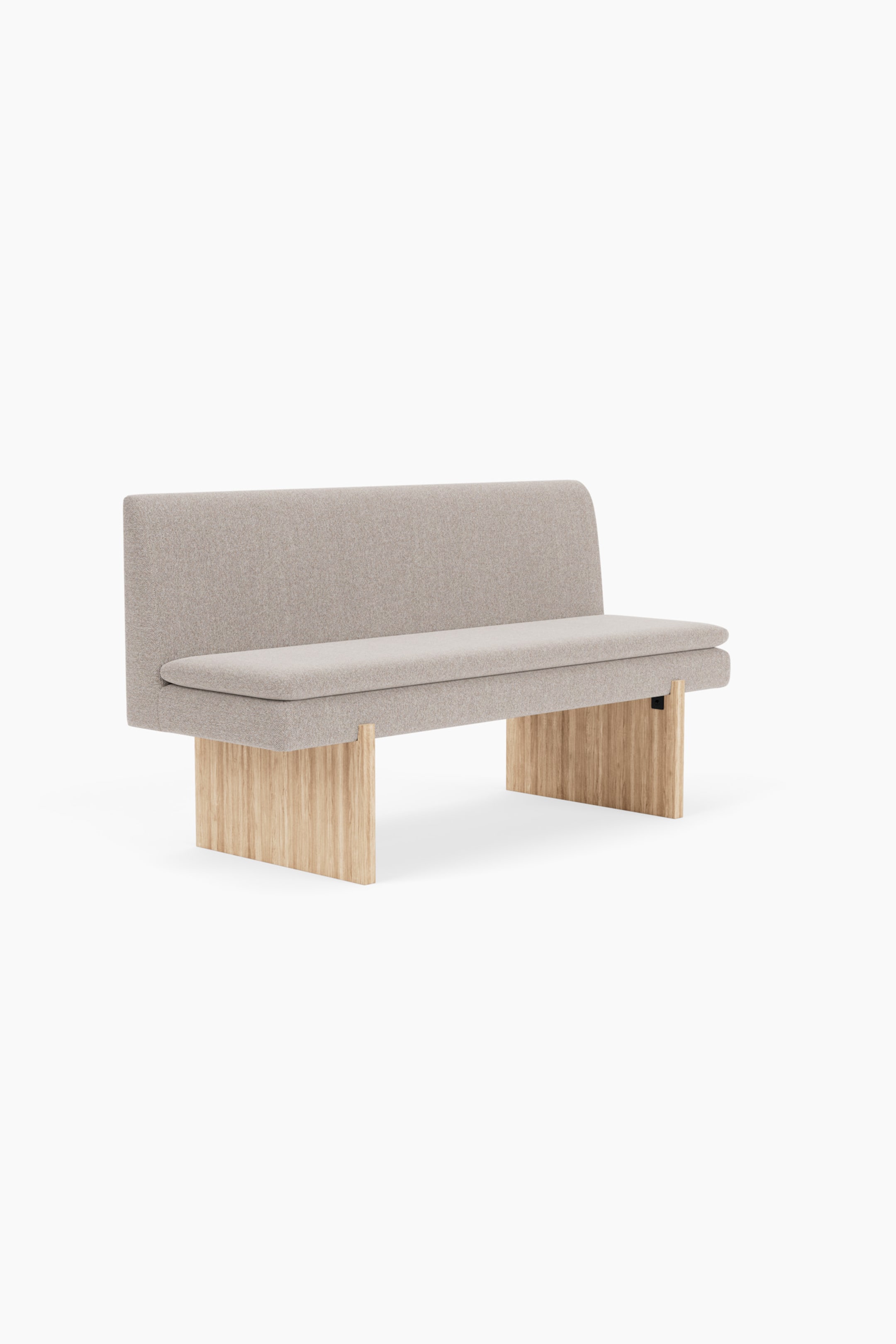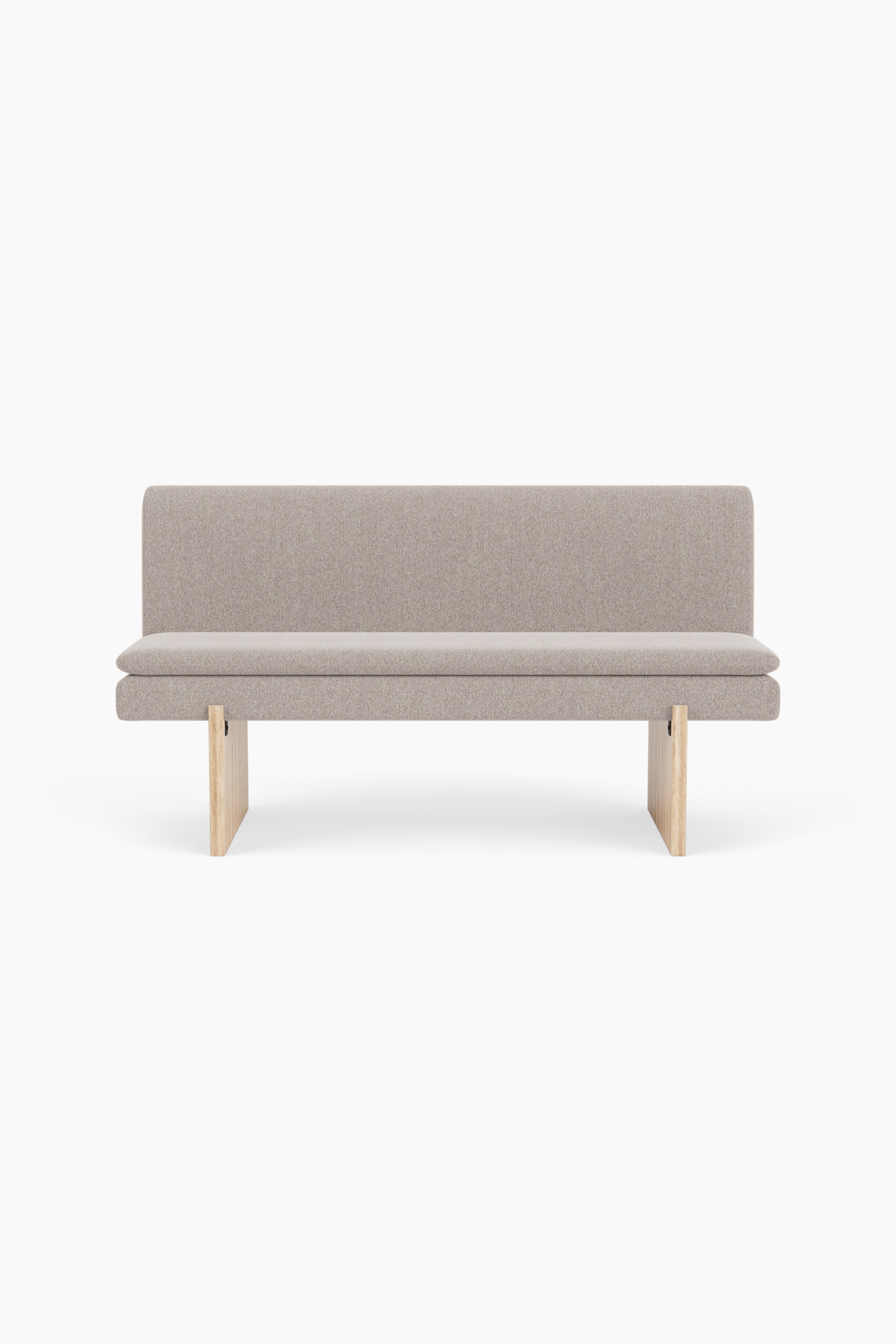 Umi ist eine minimalistische Esszimmerbank mit Rückenlehne. Das Design ist vom Japandi-Stil inspiriert, einer Verschmelzung japanischer und skandinavischer Designtraditionen mit dem Schwerpunkt auf Funktionalismus, klaren Linien und natürlichen Materialien. Die Holzbeine umschließen den Sitzrahmen und unterstreichen den schlichten Ausdruck. Umi ist mit einem klassischen gewebten Stoff mit Melange-Effekt in einem grau-braunen Ton bezogen.L: 161cm D: 62cm H: 89cm