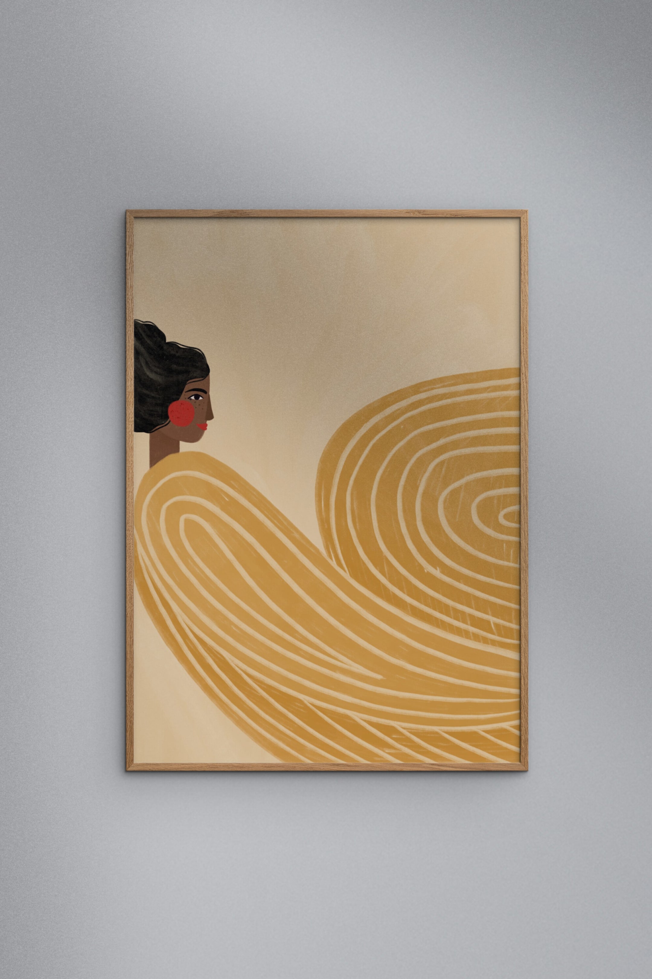 Dieses lebendige Poster zeigt eine auffällige Frau, die mit kräftigen gelben Streifen geschmückt ist und Selbstbewusstsein sowie Faszination ausstrahlt. Der dynamische Kontrast und das fesselnde Design machen es zu einem perfekten Statement-Stück für jeden modernen Raum. Rahmen separat erhältlich.