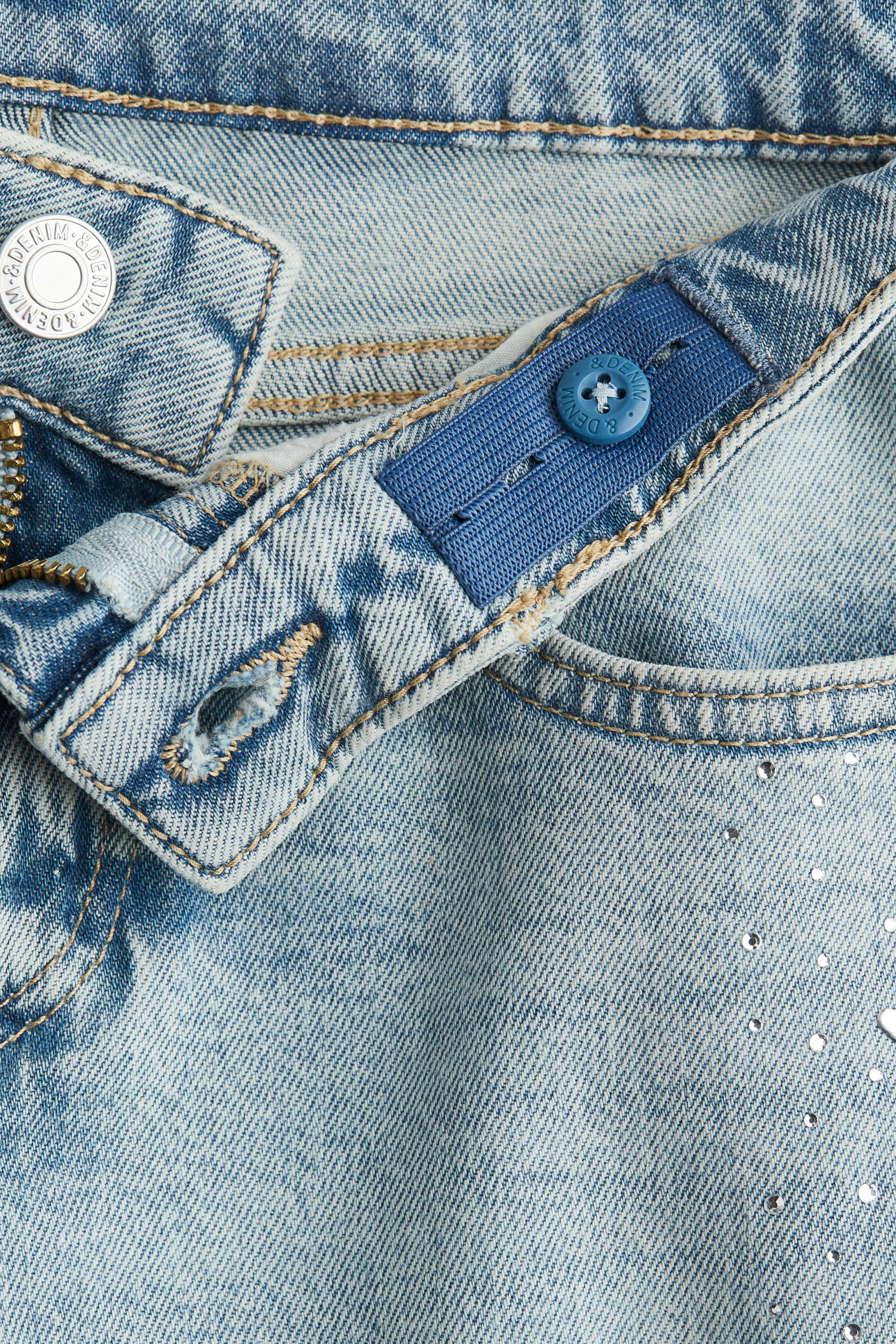 Πεντάτσεπo τζιν από βαμβακερό denim με ξεθωριασμένη όψη και αφαιρούμενες διακοσμητικές αλυσίδες. Χαμηλή μέση με ρυθμιζόμενο λάστιχο και κλείσιμο με φερμουάρ και κουμπί. Άνετη εφαρμογή στους γοφούς, τους μηρούς και τις γάμπες.