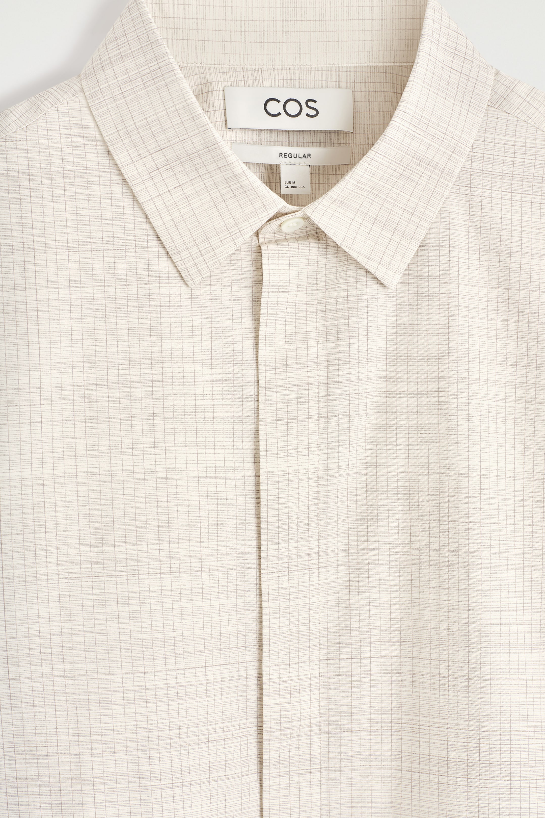 Αυτή τη σεζόν, το κλασικό πουκάμισο επανεξετάζεται διακριτικά: κομψό στις λεπτομέρειες, χαλαρό στην απήχηση. Αυτό είναι φτιαγμένο από βαμβάκι και έχει λεπτό καρό μοτίβο που σχεδιάστηκε στο χέρι στο ατελιέ της COS. Άλλες λεπτομέρειες διατηρούνται μίνιμαλ, όπως ο μυτερός γιακάς και τα κουμπιά από φίλντισι. Κανονική γραμμή Κλείσιμο με κουμπιά Εξωτερικό: 100% Βαμβάκι. Εξαιρούνται τα διακοσμητικά / Πλένεται στο πλυντήριο Το μήκος της πλάτης για το μέγεθος M είναι 76cm / Το μοντέλο φοράει μέγεθος M