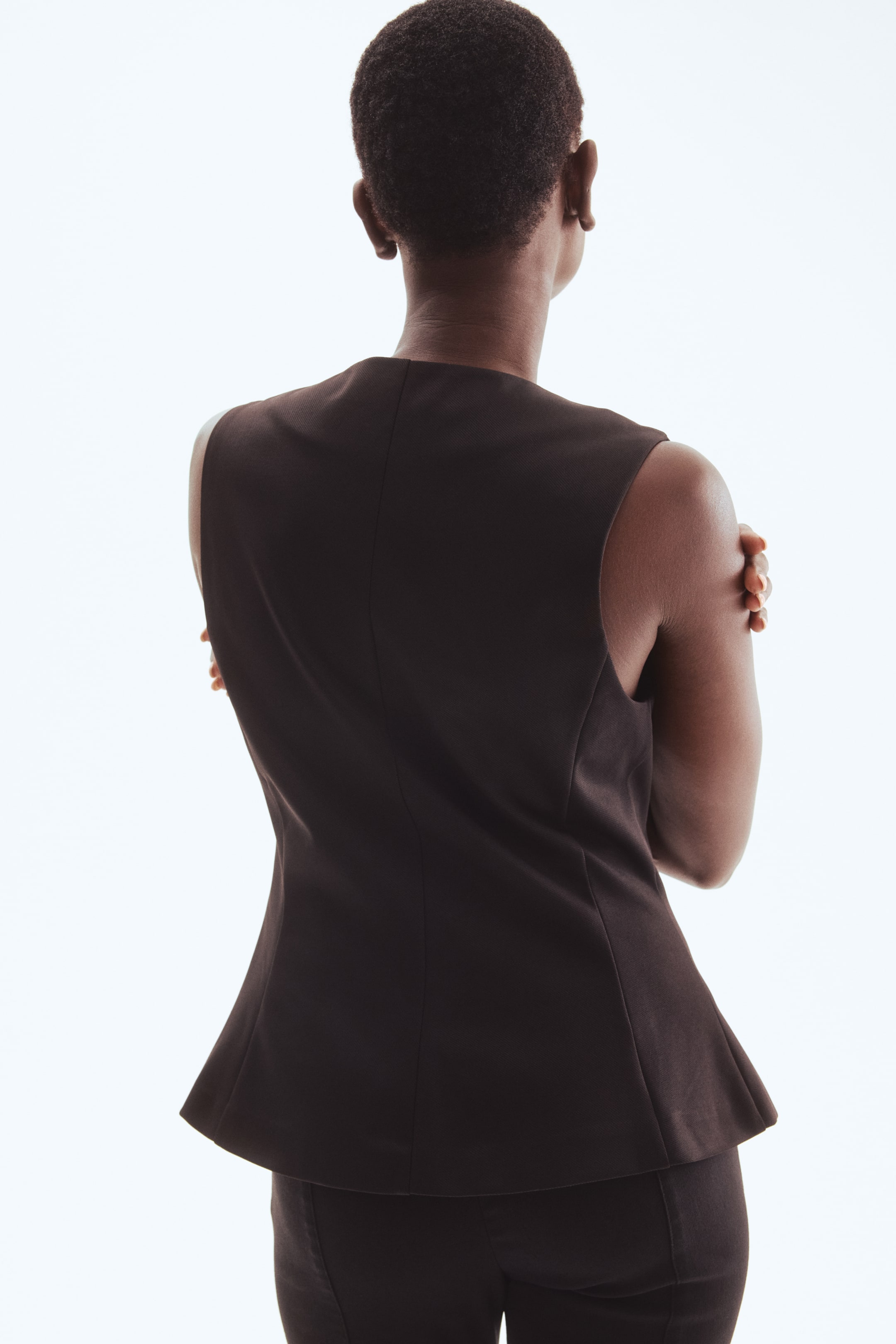 Waistcoat in jersey with a V-neckline and buttons at the front. Shaping seams at the front and back and a gently flared hem. Lined.
