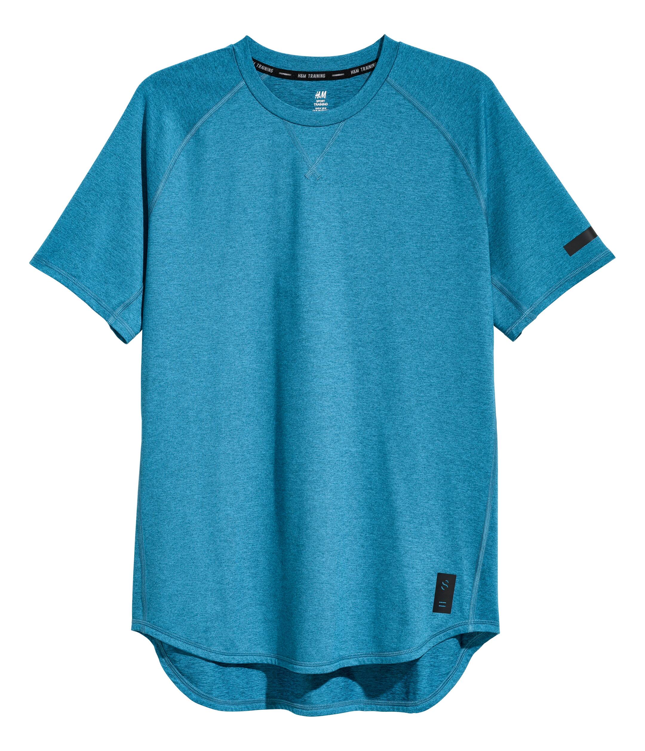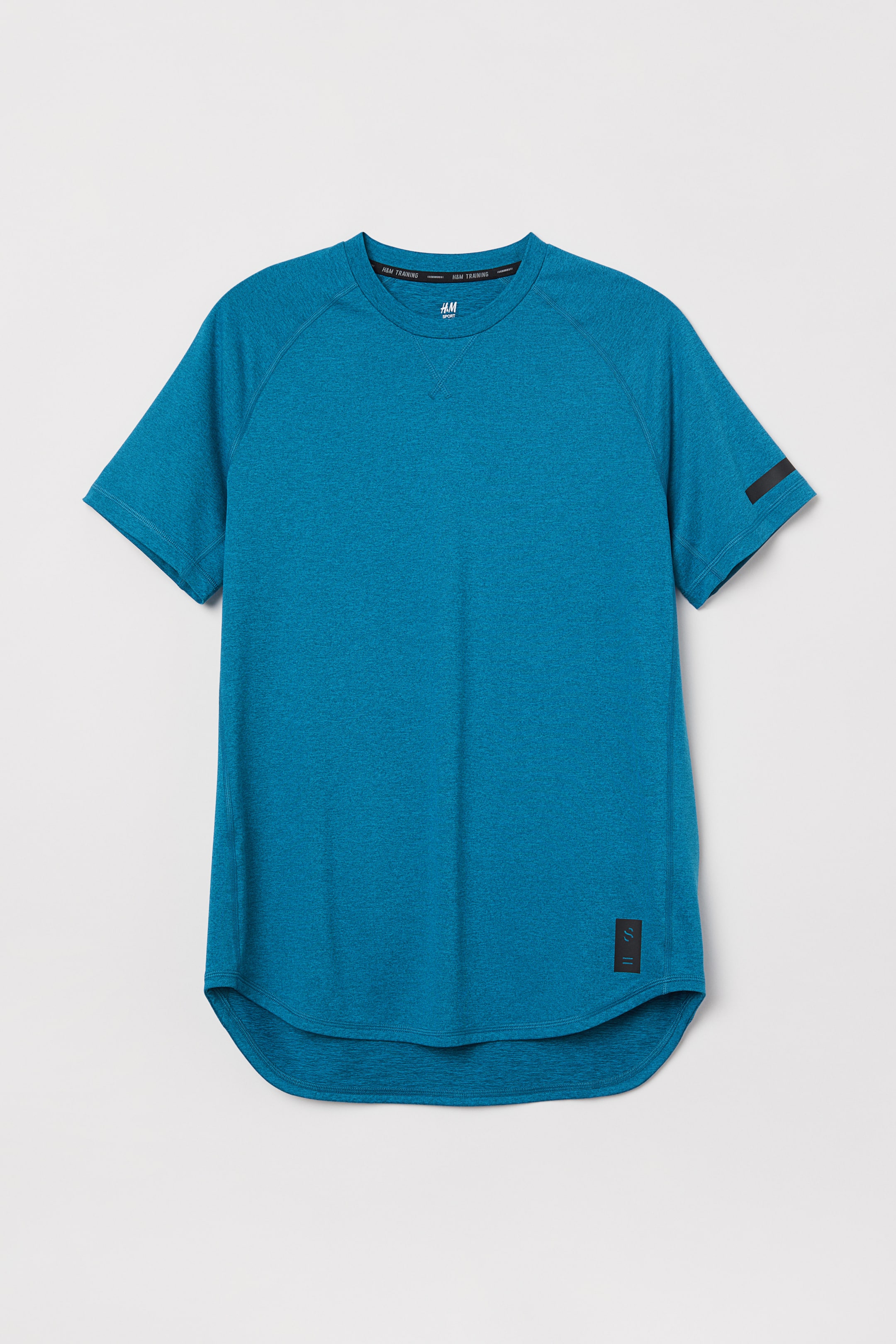 Sports top in fast-drying functional fabric with taped details and short raglan sleeves. Rounded and longer at the back.