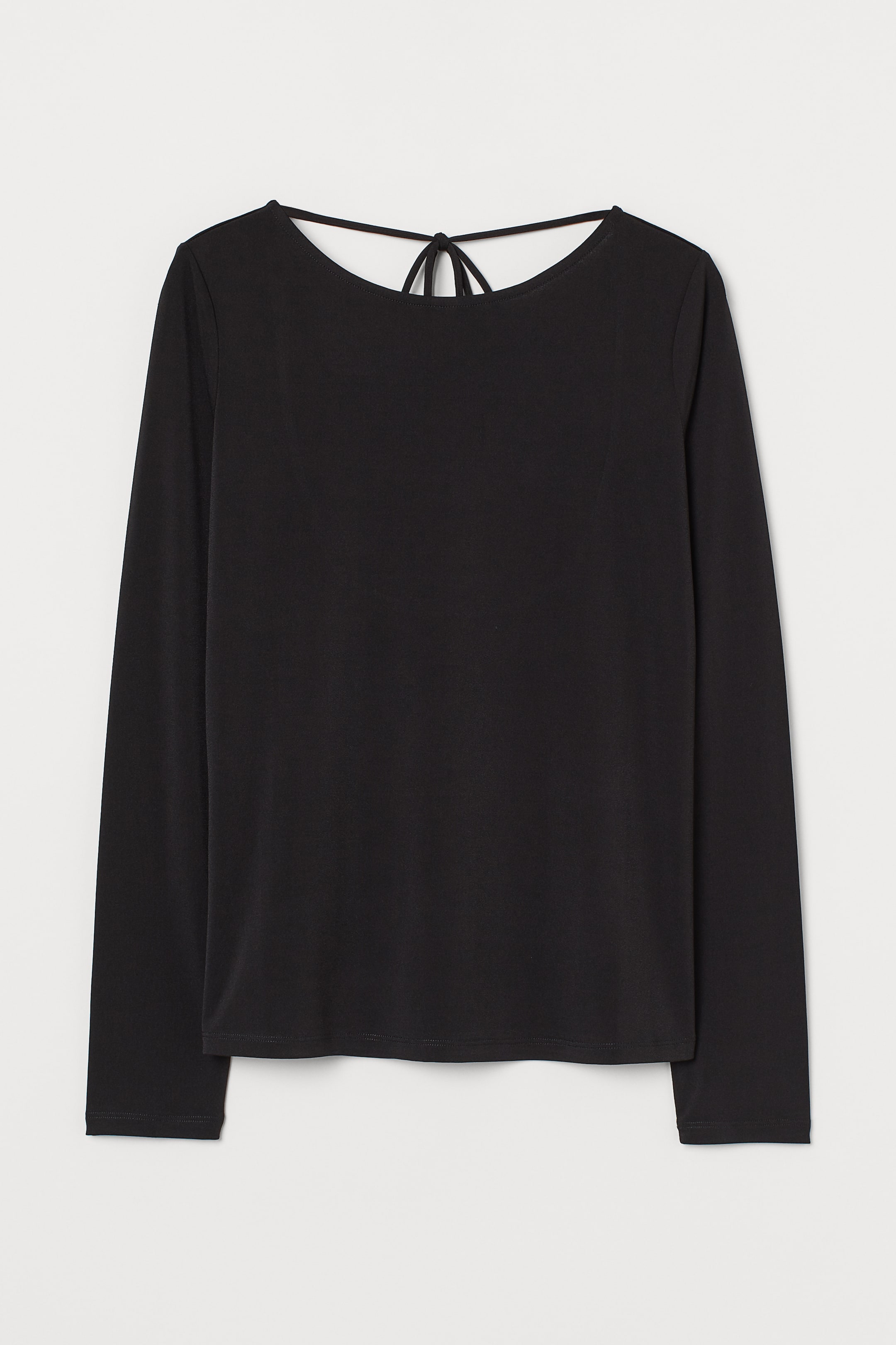 Fitted, long-sleeved top in jersey with a deep neckline at the back and horizontal ties at the back of the neck.
