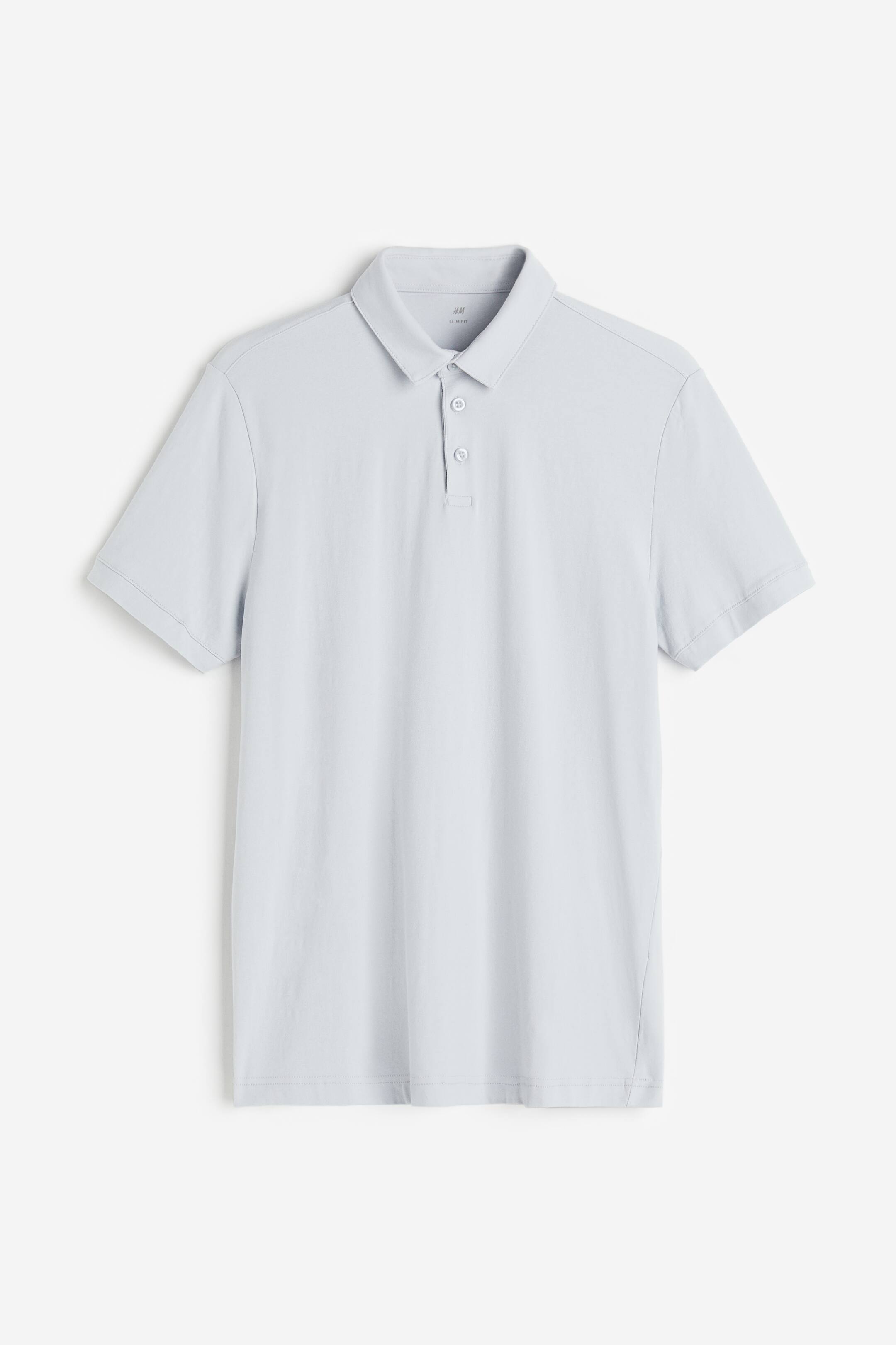 Polo shirt in lightweight cotton jersey with a collar, button placket, short sleeves and a straight-cut hem. Slim fit that hugs the contours of your body, creating a fitted silhouette.