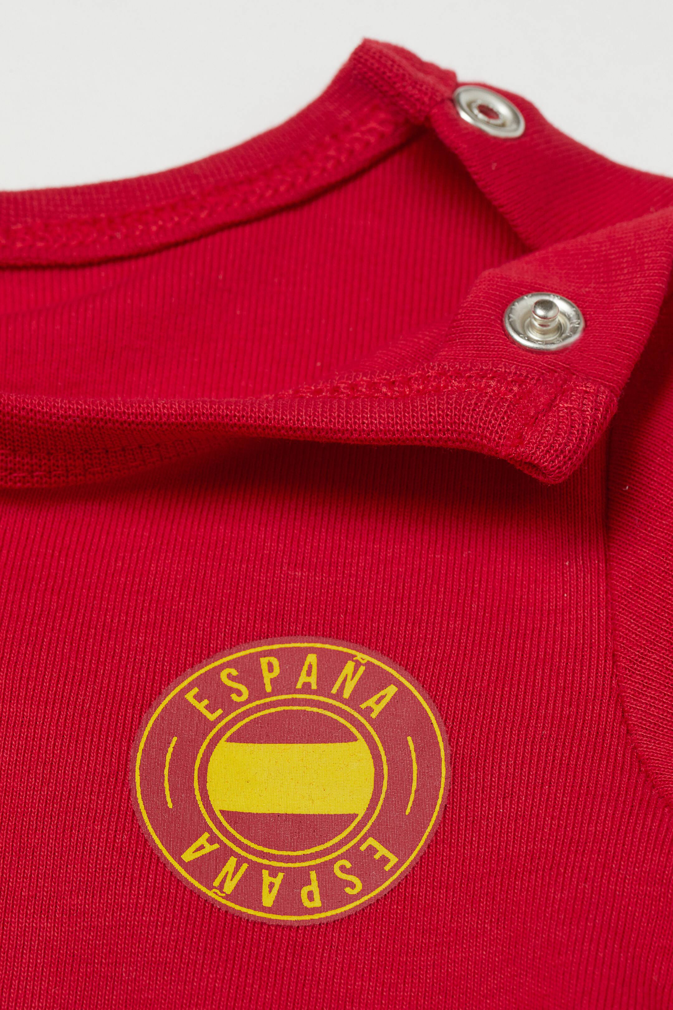 Short-sleeved bodysuit in soft cotton jersey with print motifs front and back. Concealed press-stud on one shoulder and press-studs at the crotch.
