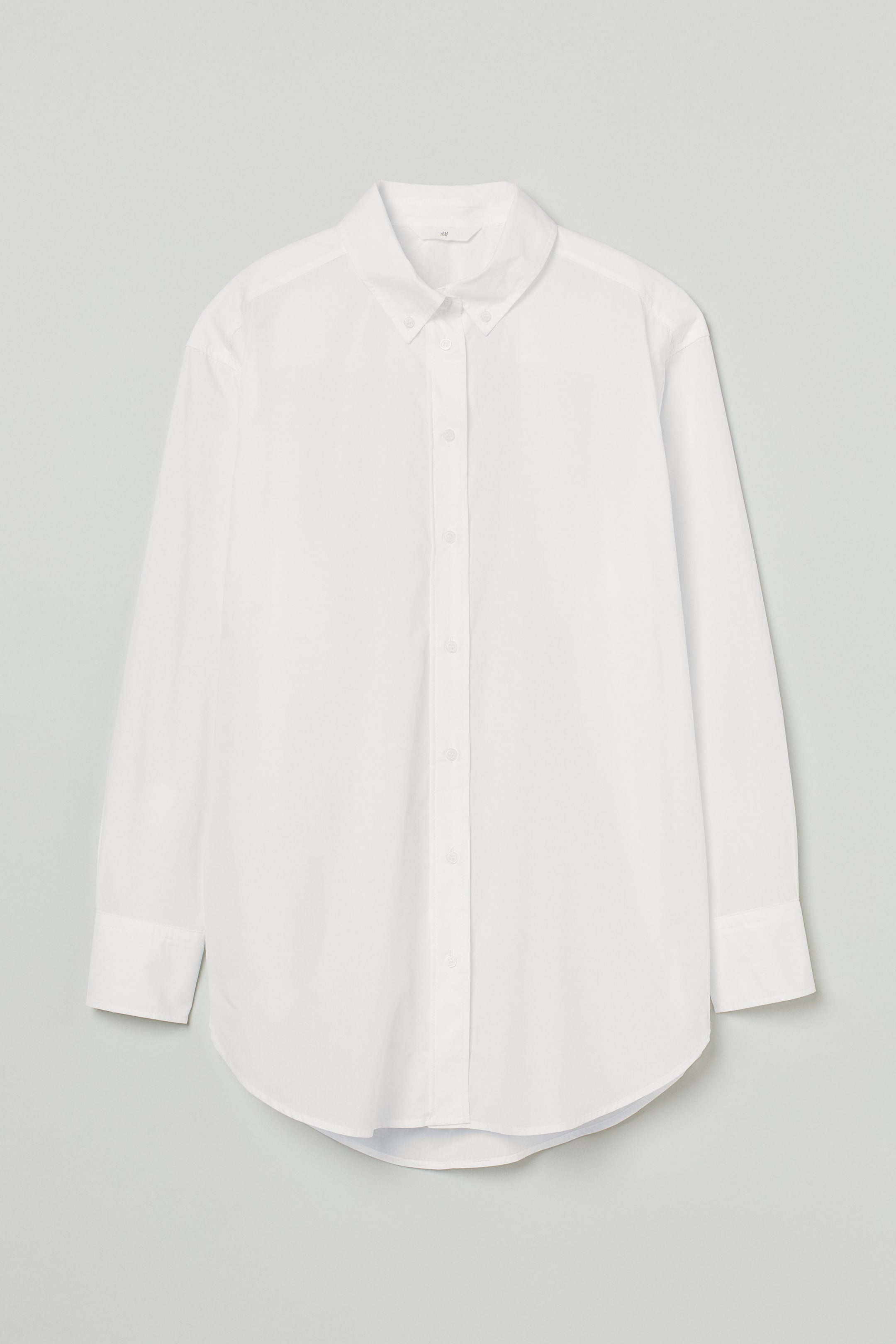 Shirt in a cotton weave with a button-down collar, buttons down the front and a double-layered yoke with a pleat at the back. Relaxed fit with dropped shoulders, long sleeves with wide, buttoned cuffs, and a rounded hem. Slightly longer at the back.