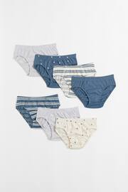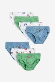 Boys’ briefs in soft cotton jersey with covered elastication at the waist and a lined front. Three pairs with an all-over print and four in a solid colour.