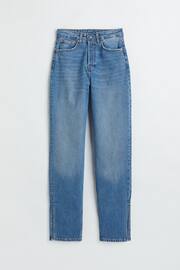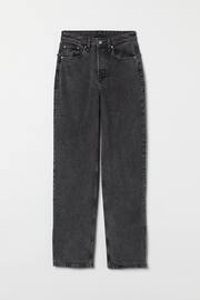 5-pocket jeans in sturdy, washed denim with a high waist, button fly and straight legs with a slit at the hems.