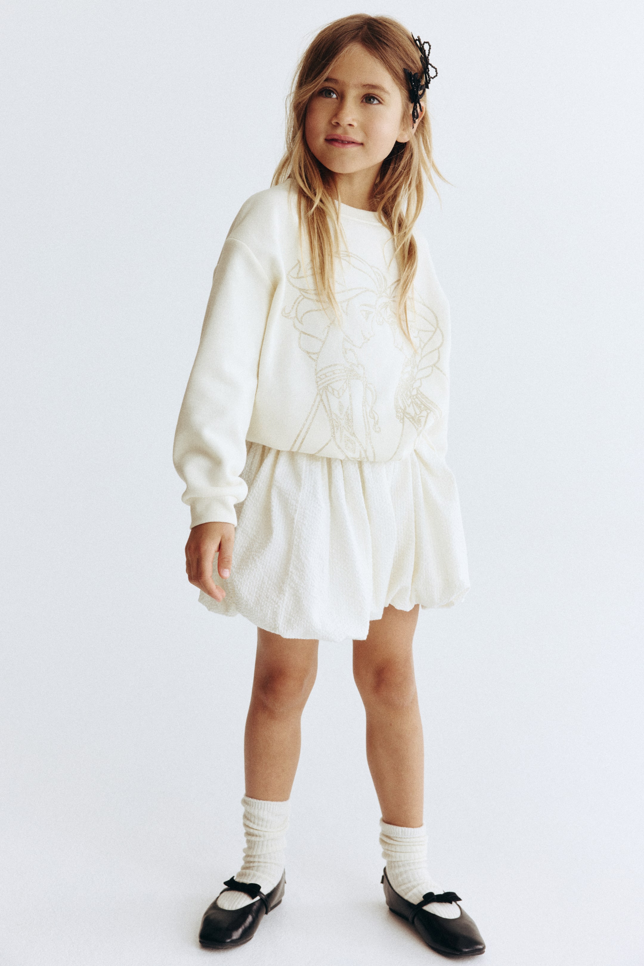 Top in printed sweatshirt fabric with a soft brushed inside. Round, rib-trimmed neckline and long, voluminous sleeves. Ribbing at the cuffs and hem.
