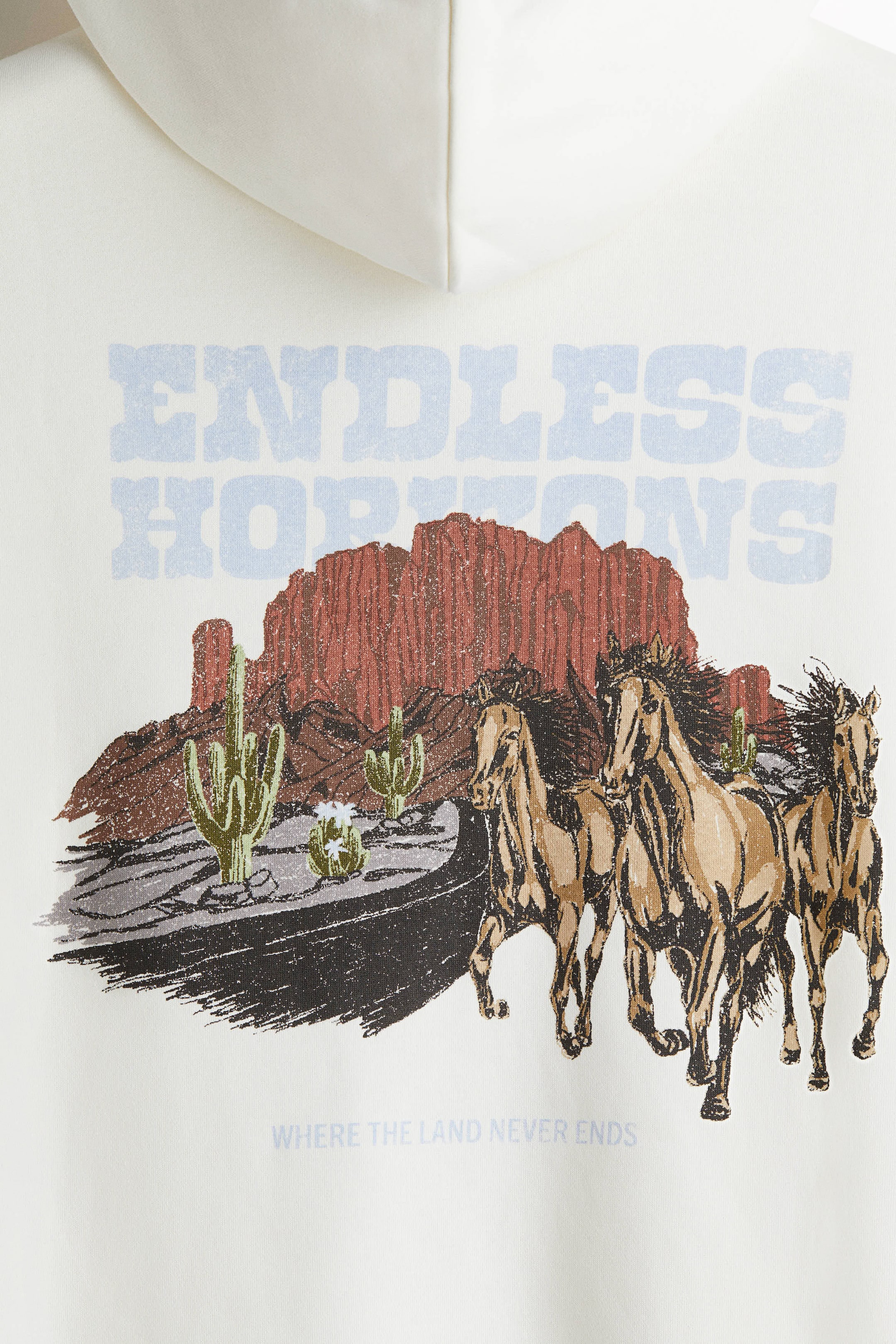 Hoodie in printed midweight sweatshirt fabric made from a cotton blend with a soft brushed inside. Wrapover hood, dropped shoulders, long sleeves, a kangaroo pocket and wide ribbing at the cuffs and hem. Relaxed fit for a generous but not oversized silhouette.