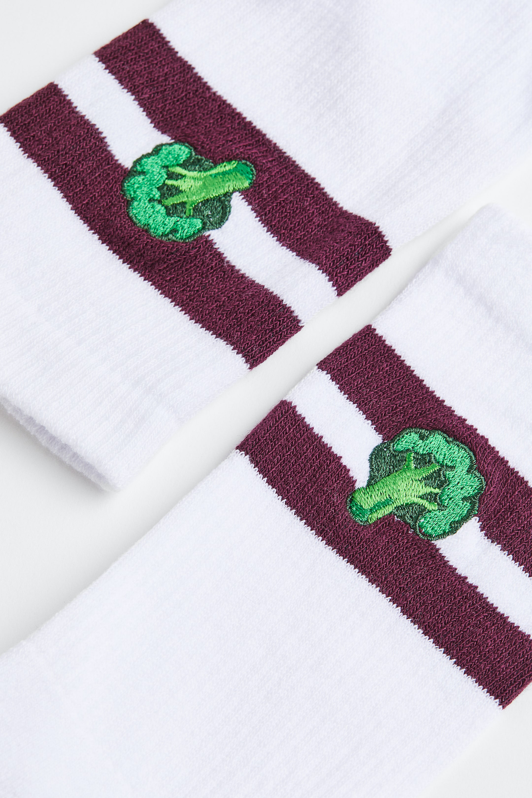 Rib-knit socks in a soft cotton blend with high shafts and elasticated tops.
