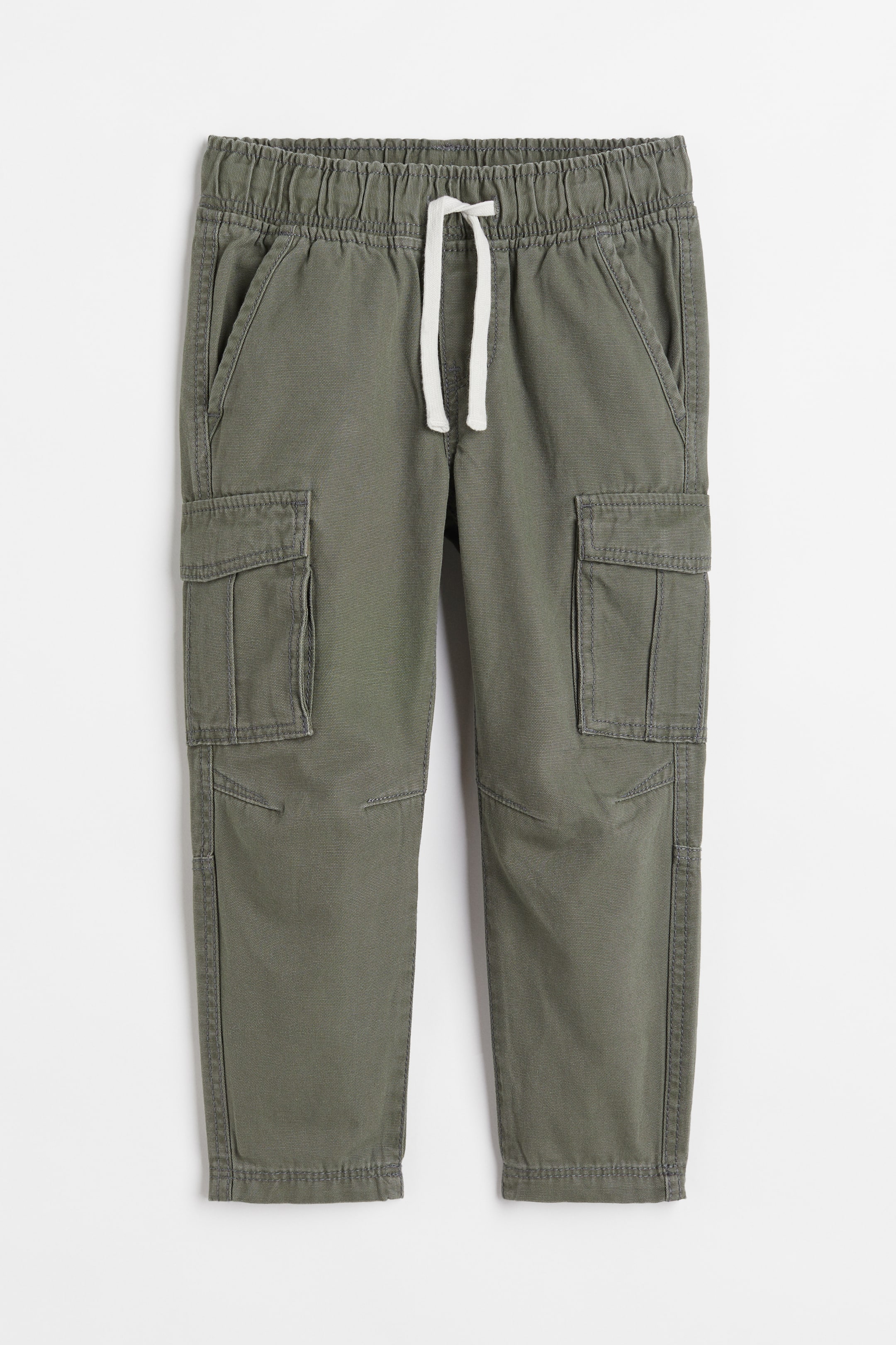 Cargo joggers in a cotton weave. Relaxed fit with covered elastication and a drawstring at the waist, a fake fly, diagonal side pockets and fake back pockets with a flap. Tapered legs with reinforcement inside the knees and bellows pockets with a flap.
