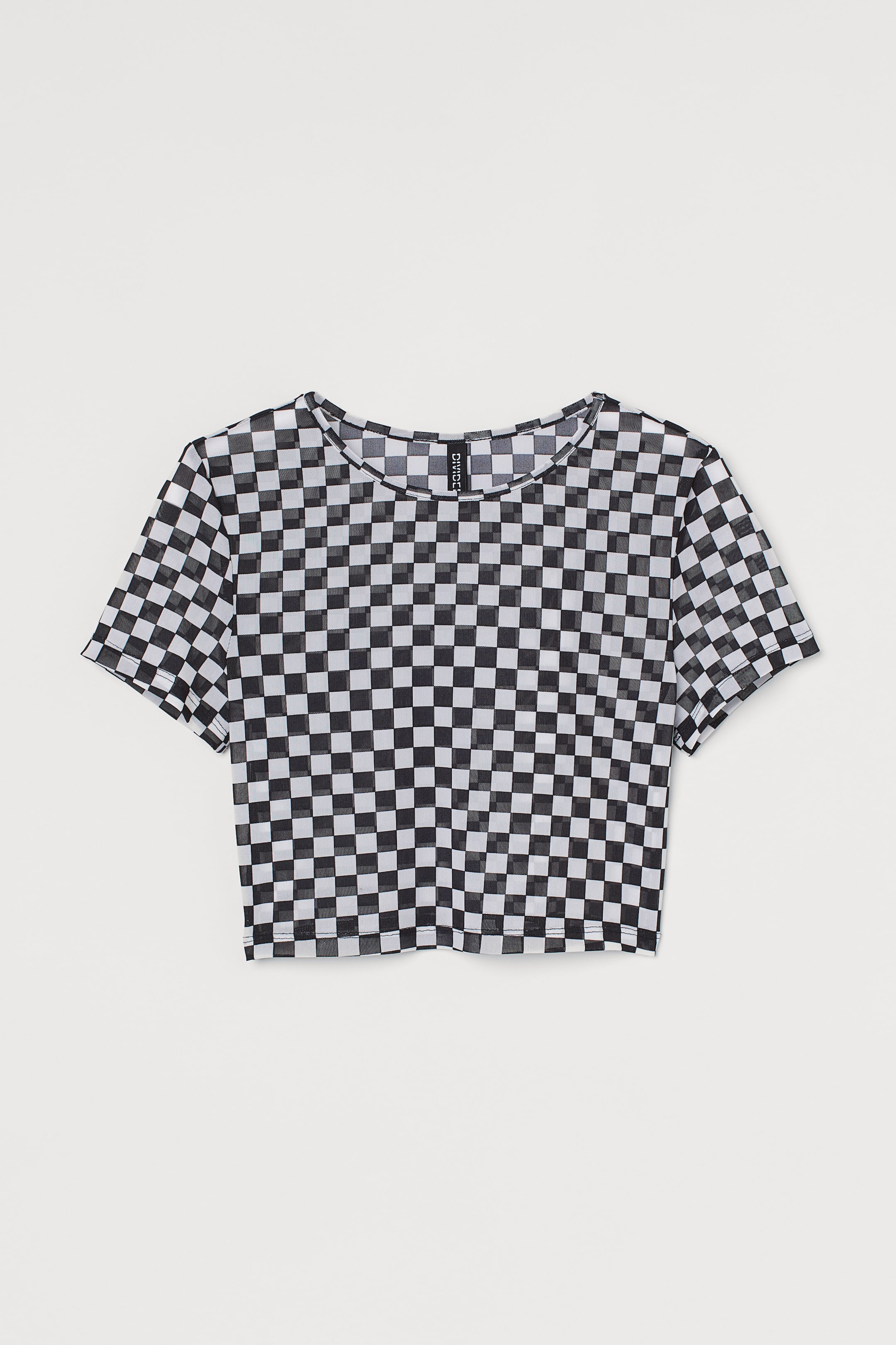 Cropped top in cotton jersey with a round neckline and short sleeves. Overlocked edges around the sleeves and hem.