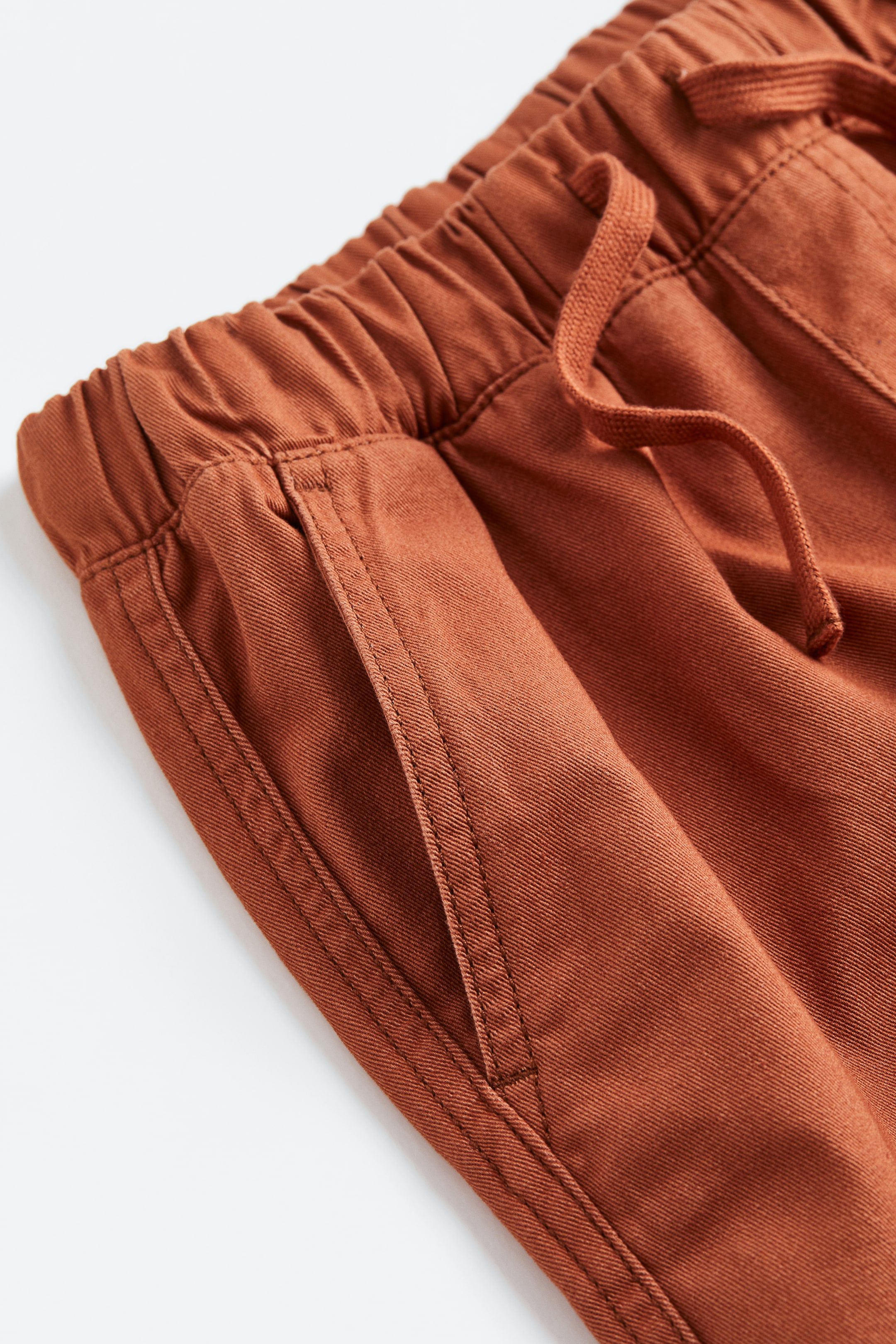 Joggers in washed cotton twill with diagonal side pockets. Loose fit with play-friendly details featuring knees reinforced with LYCRA® XTRA LIFE™ extra-durable denim. Elasticated, drawstring waist, a fake fly and straight legs with covered elastication at the hems.