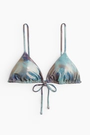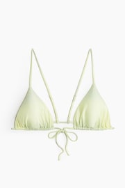 Lined, non-wired triangle bikini top with narrow, adjustable shoulder straps and ties at the front. Cups with removable inserts that shape the bust and provide good support.