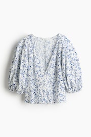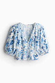Blouse in an airy weave made from a linen and viscose blend. Deep, V-shaped neckline, buttons down the front and 3/4-length, raglan balloon sleeves with narrow elastication at the cuffs.