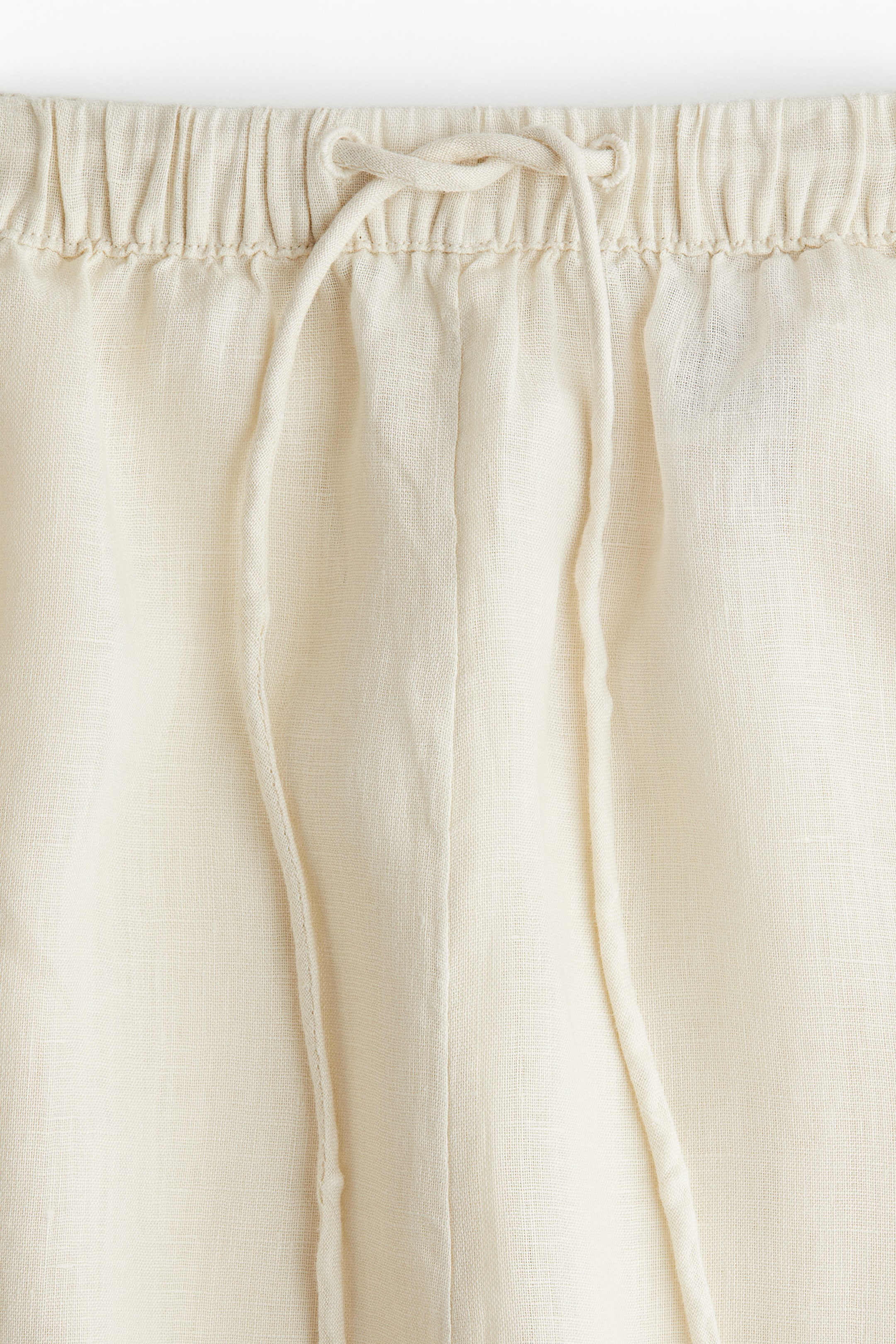Knee-length, loose-fit shorts in airy linen with diagonal side pockets and a high waist with covered elastication and a narrow drawstring.