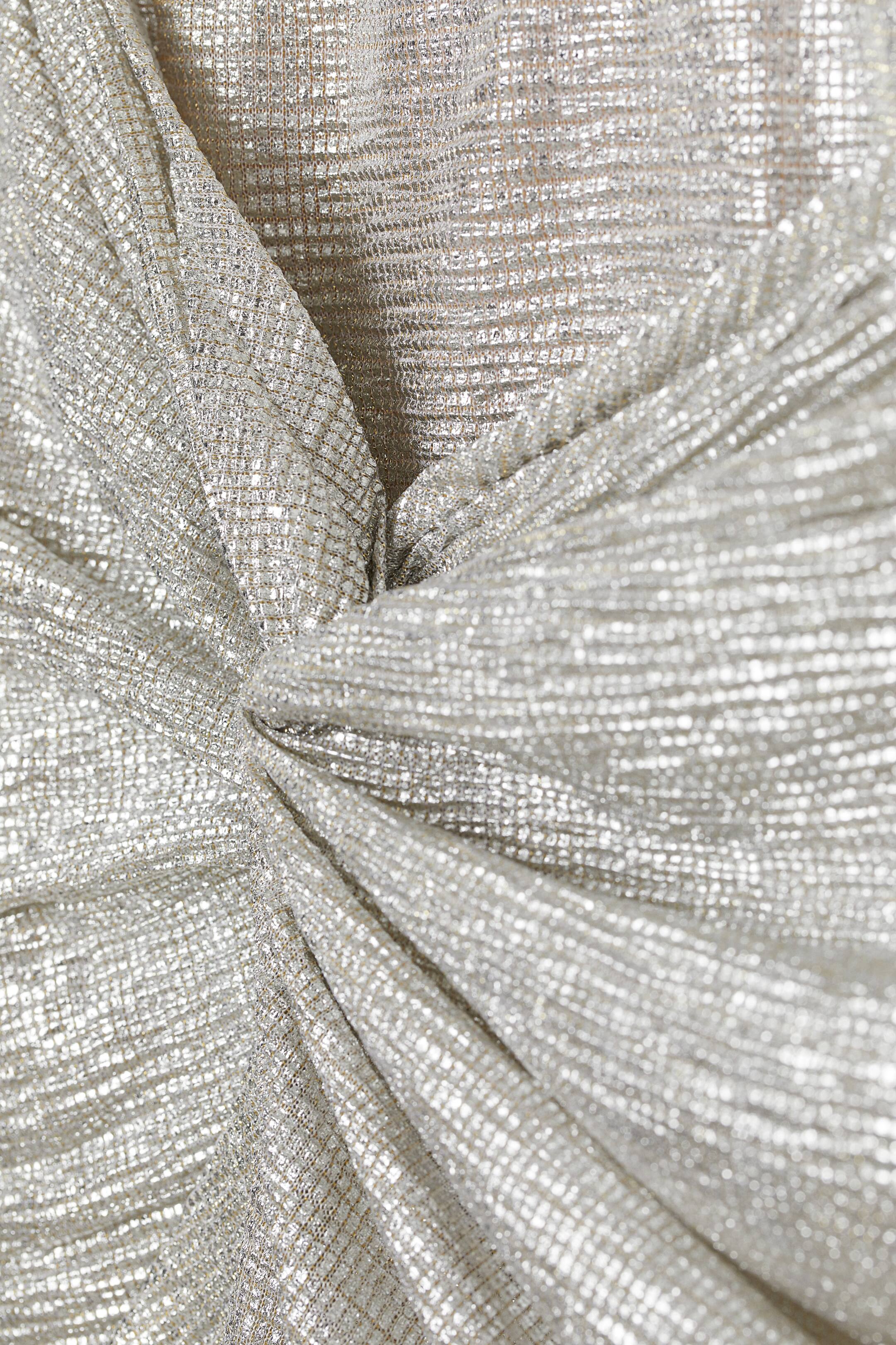 Short skirt in airy, shimmering metallic jersey with an elasticated waist. Added layer at the front with a draped knot detail. Jersey lining.