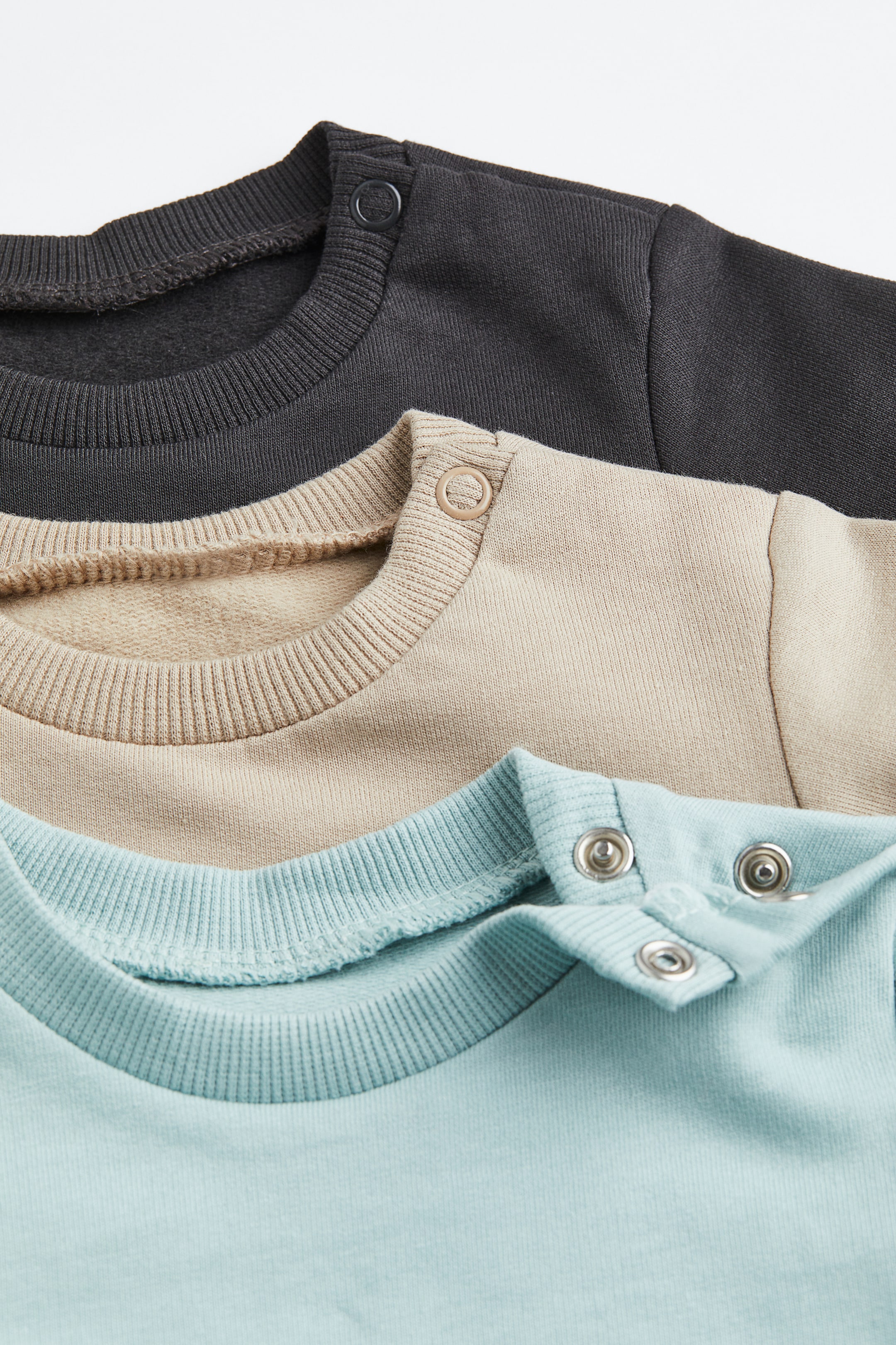 Long sleeve sweaters in cotton sweat fabric. Featuring a round neckline and a press stud on one shoulder (except in sizes 3–4). Ribbing around the neckline, cuffs and hem. Soft brushed inside.