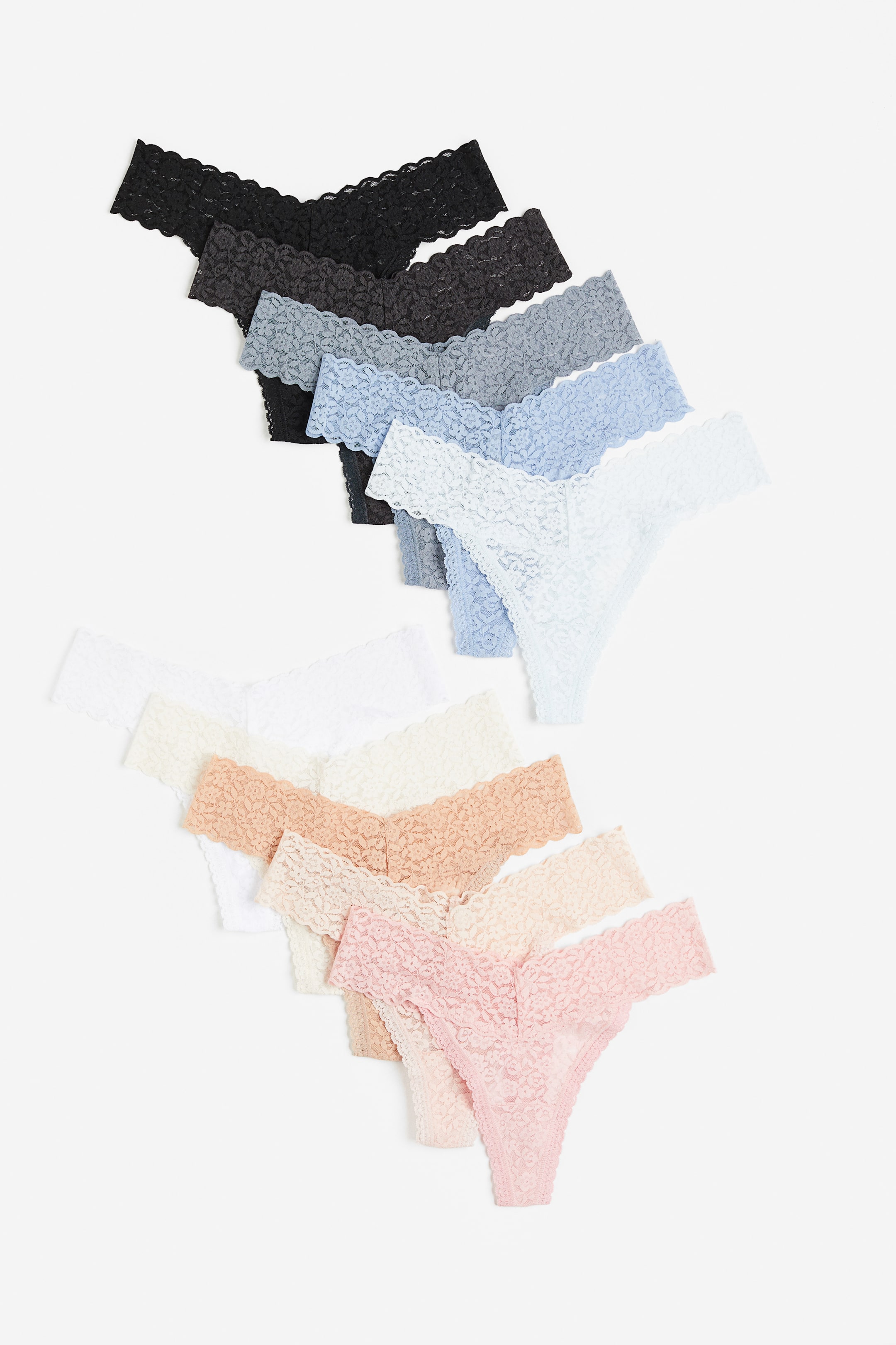 Lace G-strings featuring a low rise, V-shaped waist. Lined gusset.