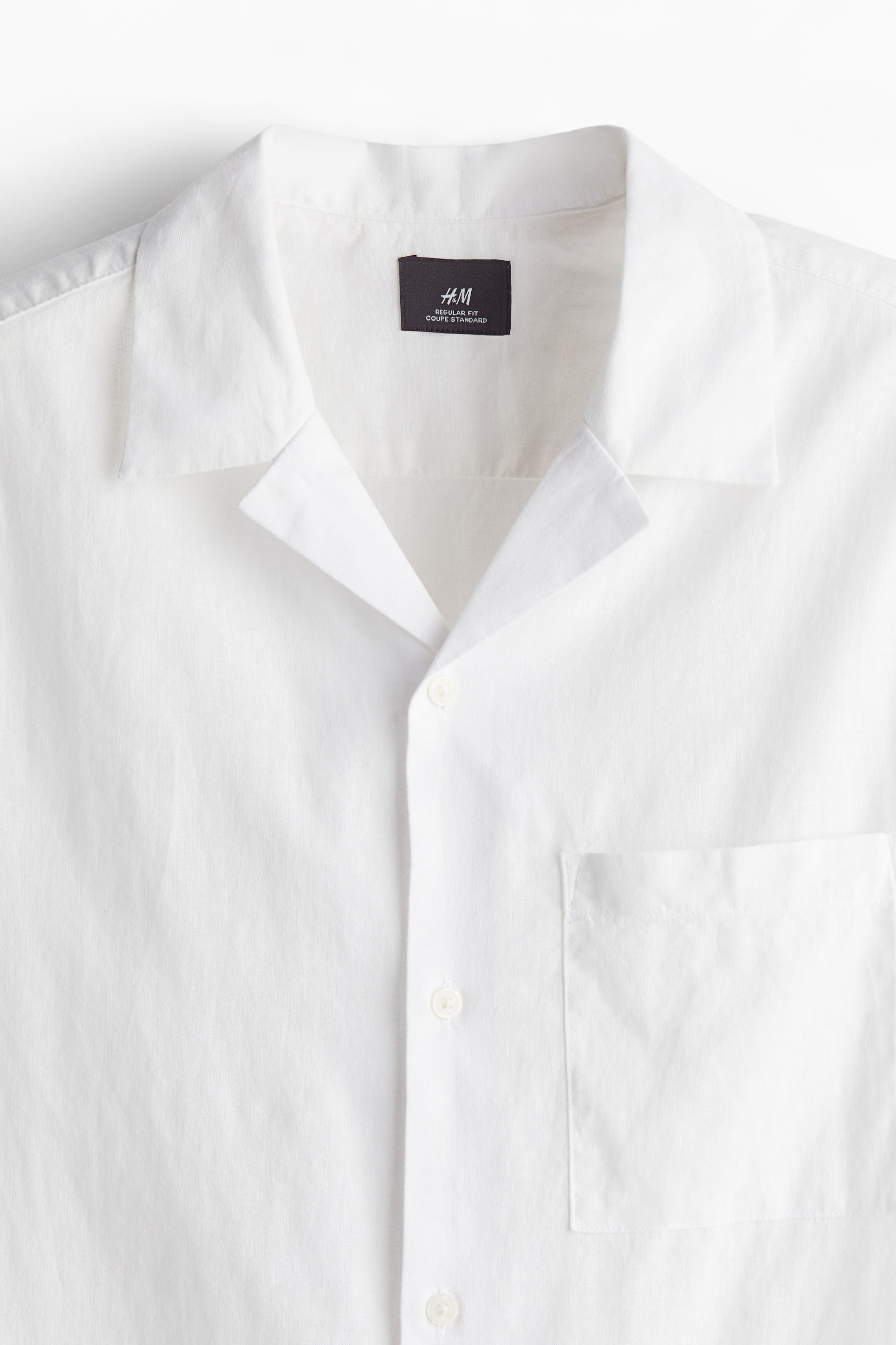 Short-sleeved shirt in an airy linen and cotton blend with a resort collar, French front, yoke at the back, chest pocket and a straight-cut hem with a slit at each side. Regular fit for comfortable wear and a classic silhouette. Cotton and linen blends combine the softness of cotton with the sturdiness of linen, creating a beautiful, textured fabric that is breathable and drapes perfectly.