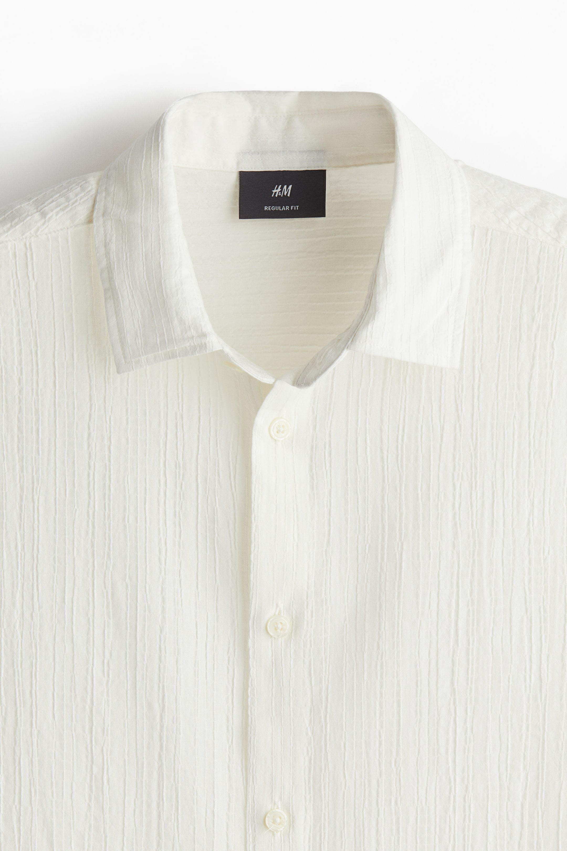 Short sleeve shirt in a textured weave made from a cotton and lyocell blend. Features a regular fit for comfortable wear and a classic silhouette. Turn down collar and a French front. Yoke at the back and a straight cut hem.