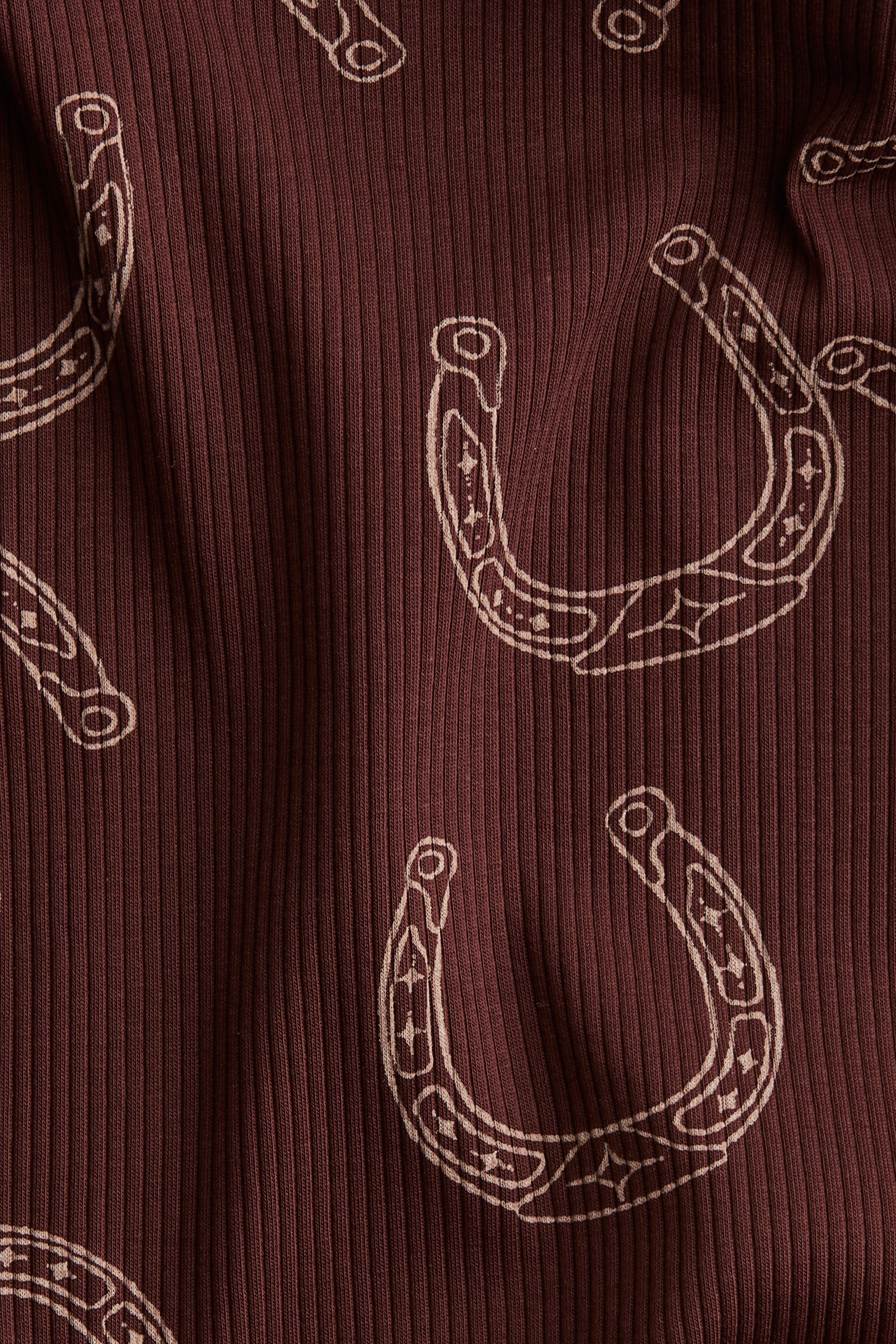 Long sleeve top in ribbed cotton jersey with an all over print. Features a round neckline and slightly flared cuffs with overlocked edges.
