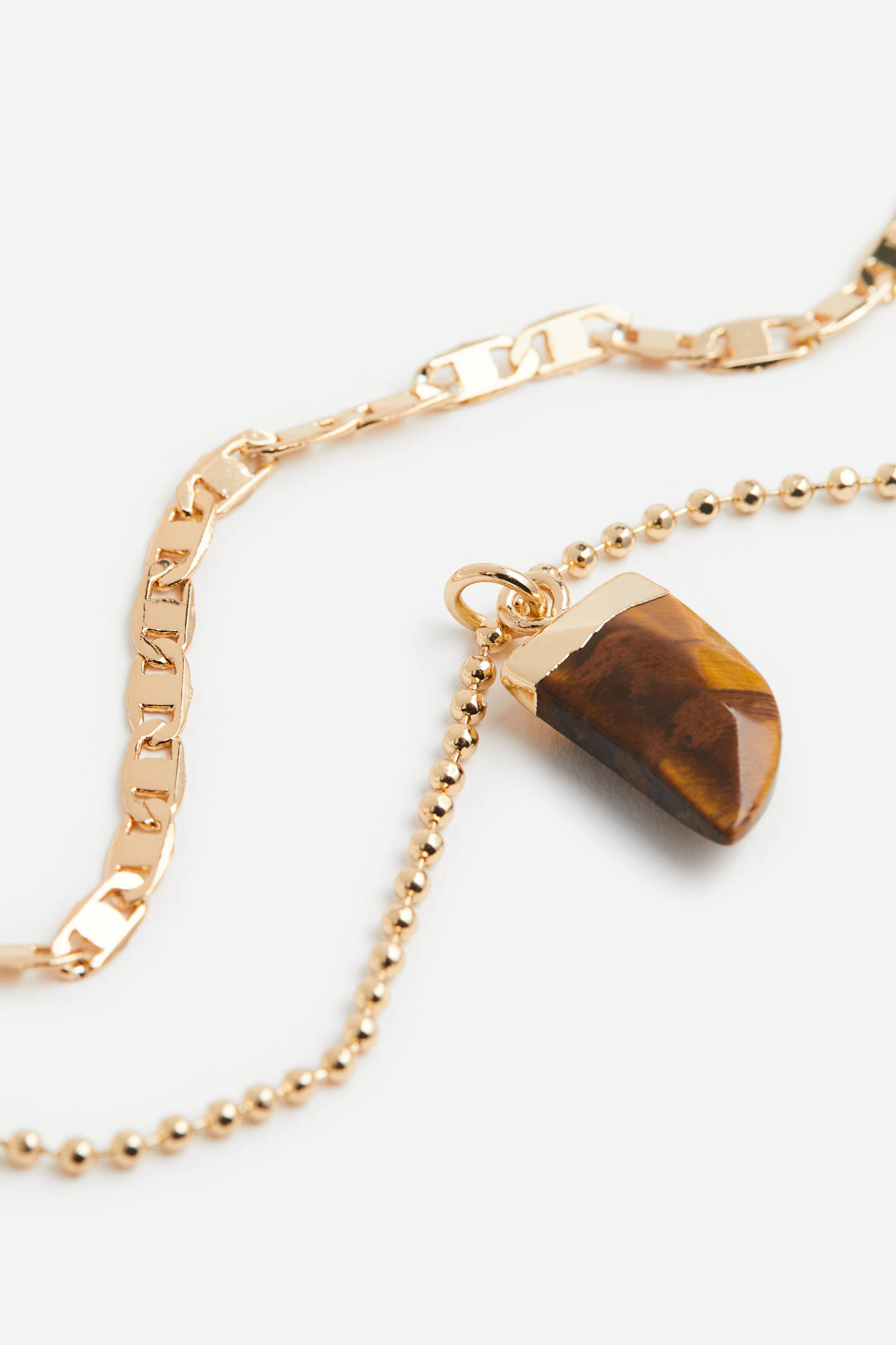 Necklaces in metal chain with different designs, one with a pendant. Both with trigger clasp.