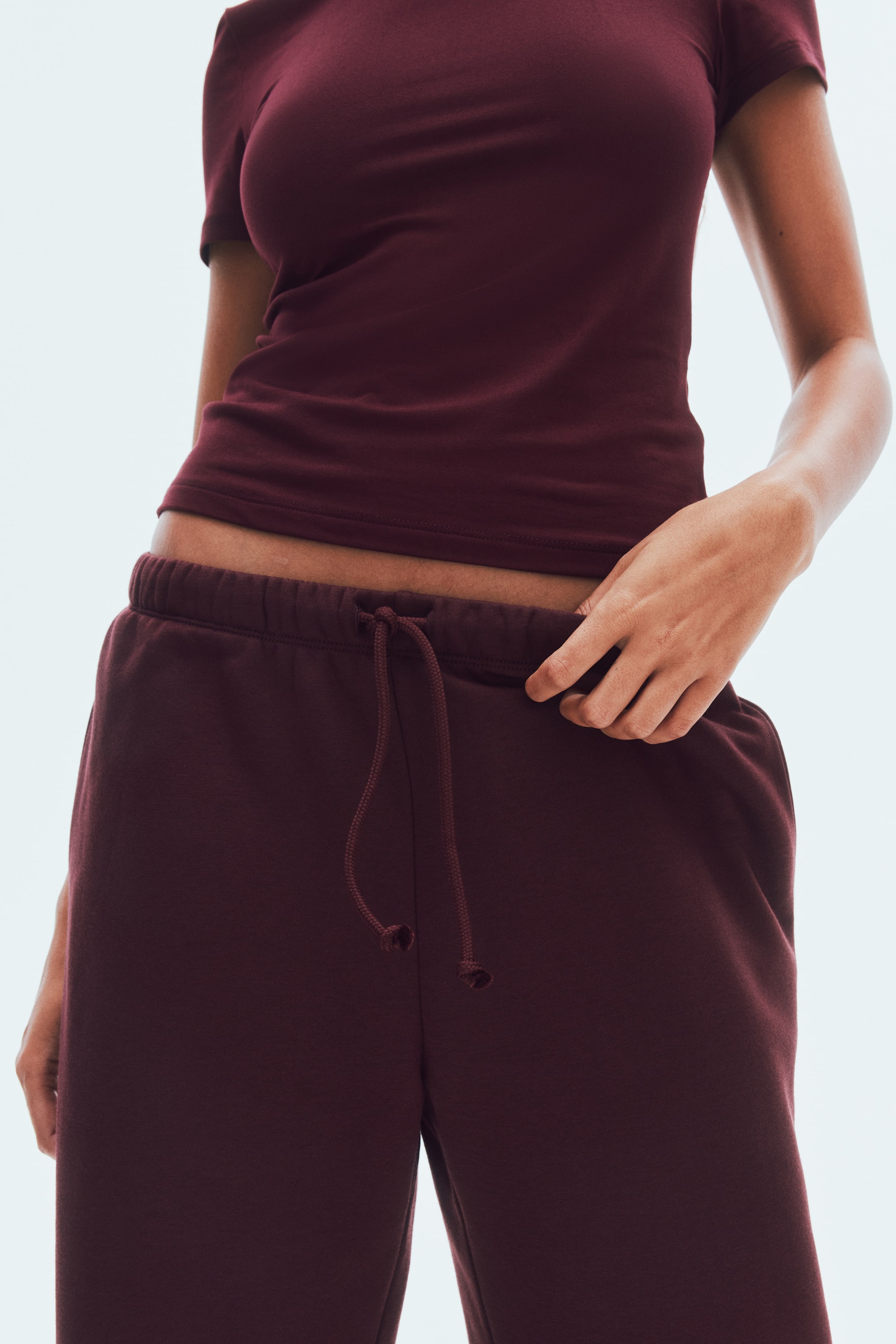 Loose-fit sweatpant joggers with a soft, brushed inside. Elasticized, drawstring waistband, discreet side-seam pockets, and wide legs.