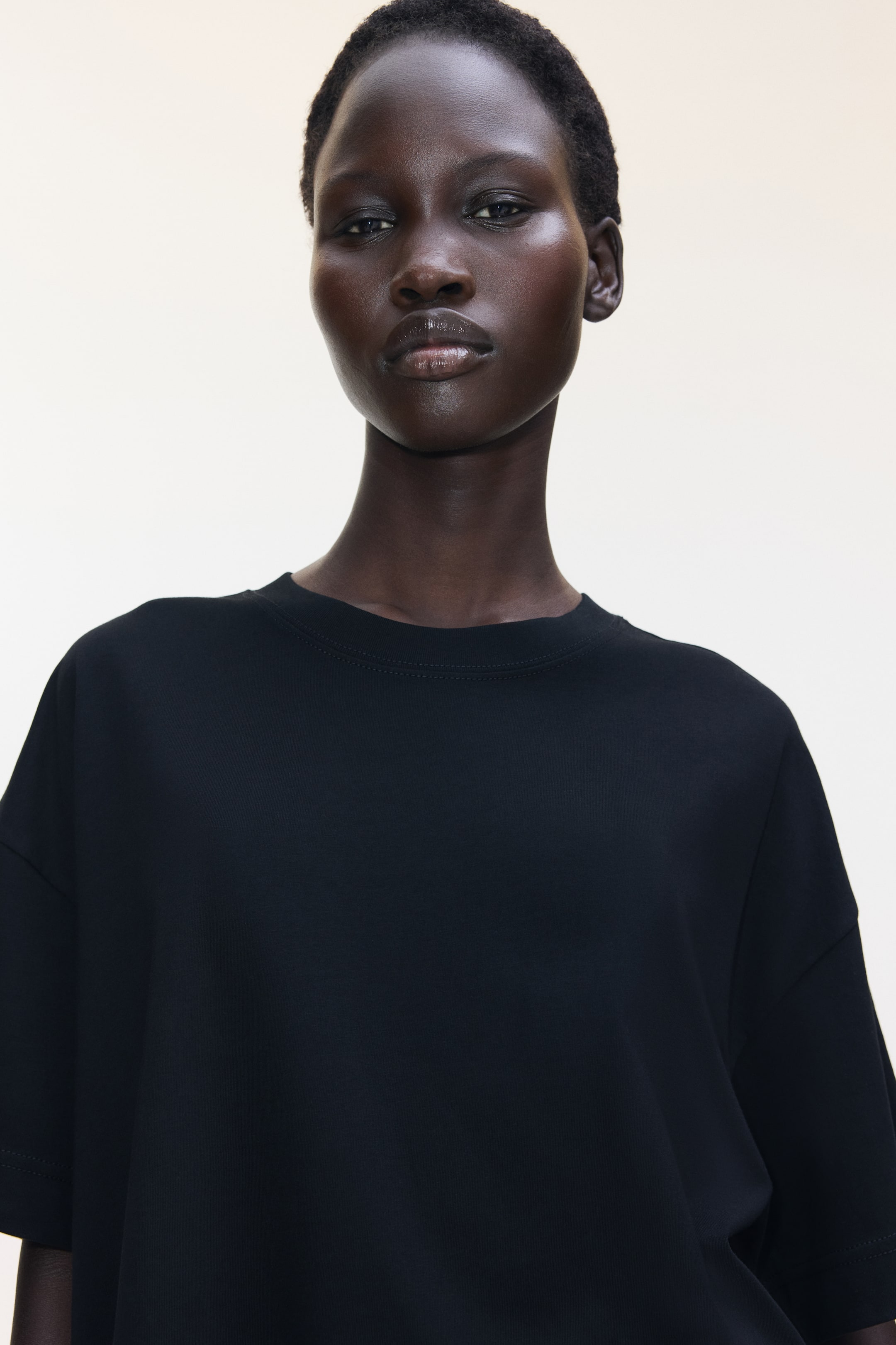 Oversized T-shirt in cotton jersey. Ribbed neckline, dropped shoulders, and straight-cut hem.