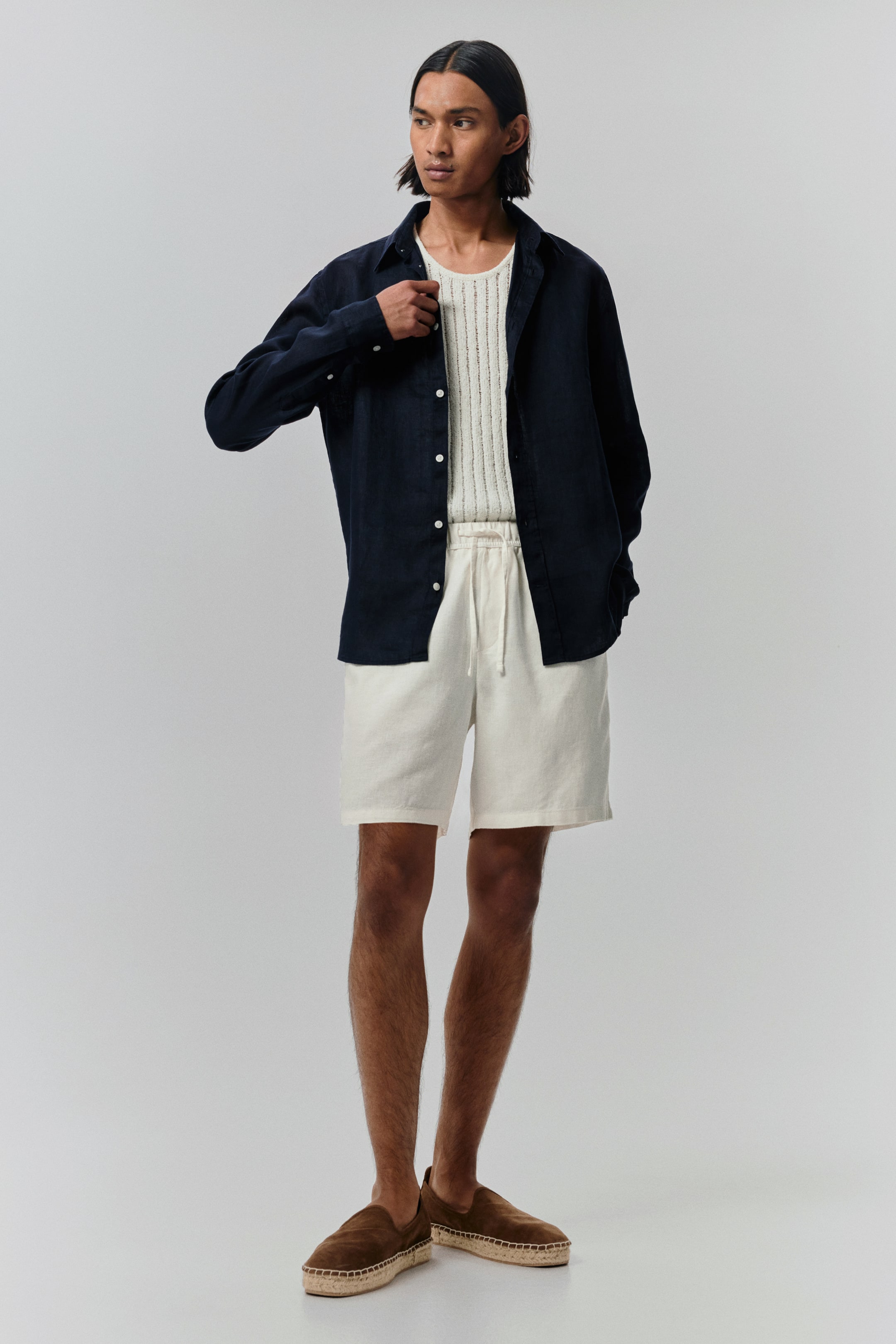 Relaxed-fit shorts in an airy, woven cotton and viscose blend with a casual but not oversized silhouette. Drawstring and covered elastic at waistband, mock fly, diagonal side pockets, and welt back pockets.