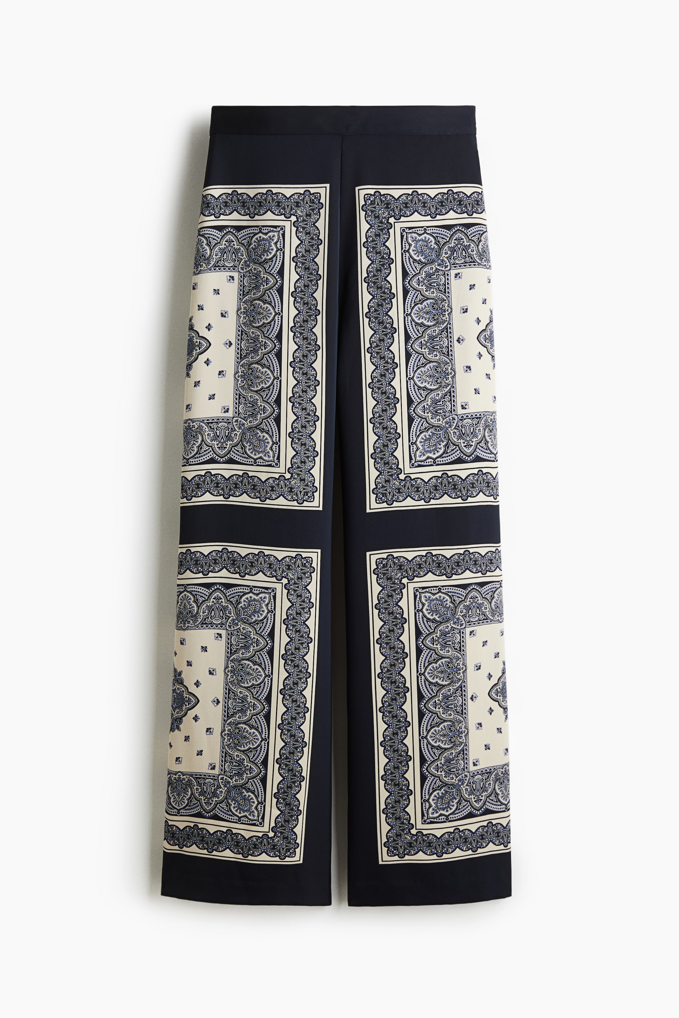 Straight-leg pants in woven fabric. High waist with covered elastic at back and a concealed zipper at one side.