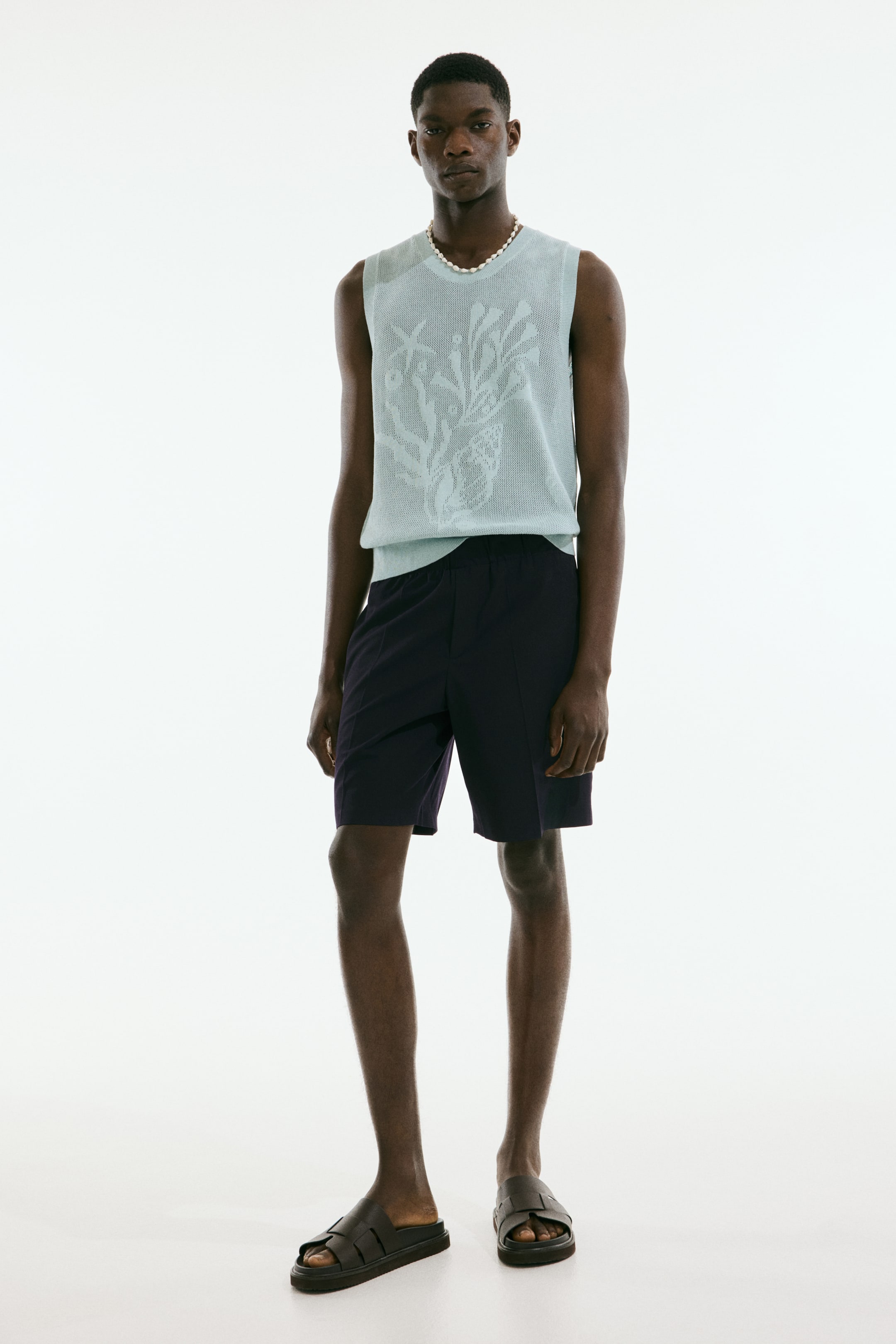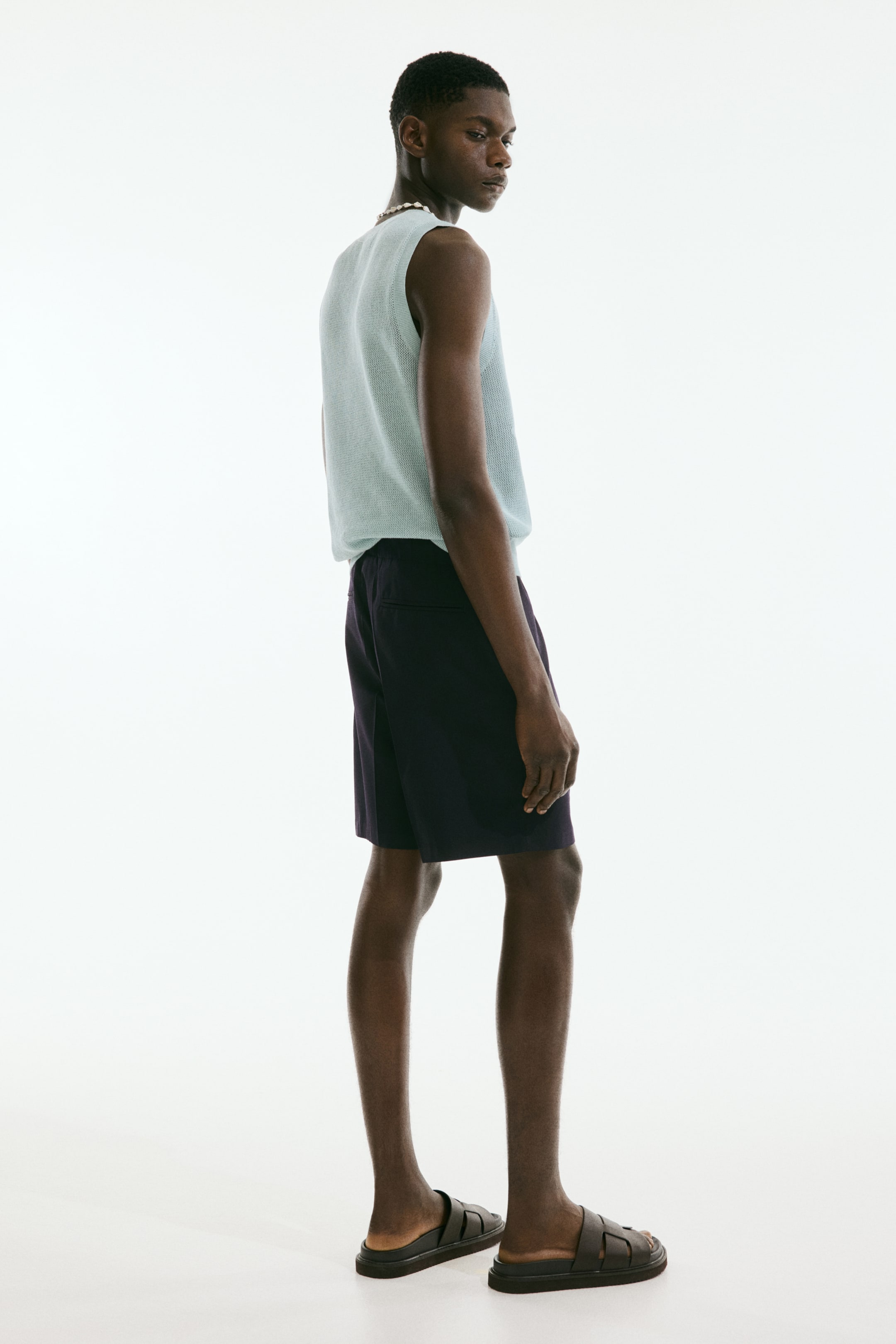 Relaxed-fit shorts in soft woven fabric with a casual but not oversized silhouette. Waistband with covered elastic and concealed drawstring, discreet side pockets, and welt back pockets.