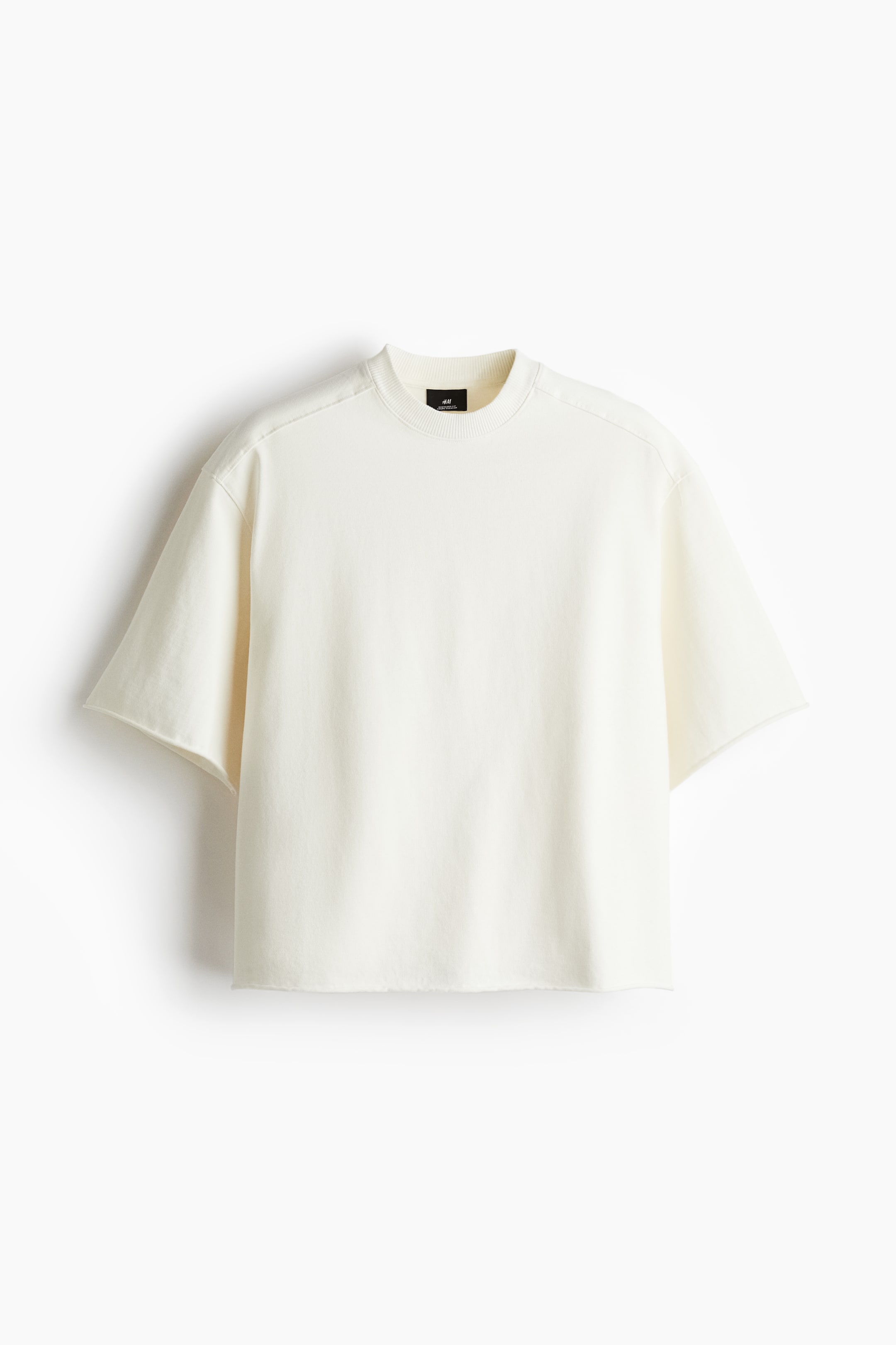 Oversized, boxy T-shirt in heavyweight cotton jersey with a baggy, extra-loose silhouette. Ribbed crew neck, dropped shoulders, yoke at back, and a rolled, raw-edge hem.