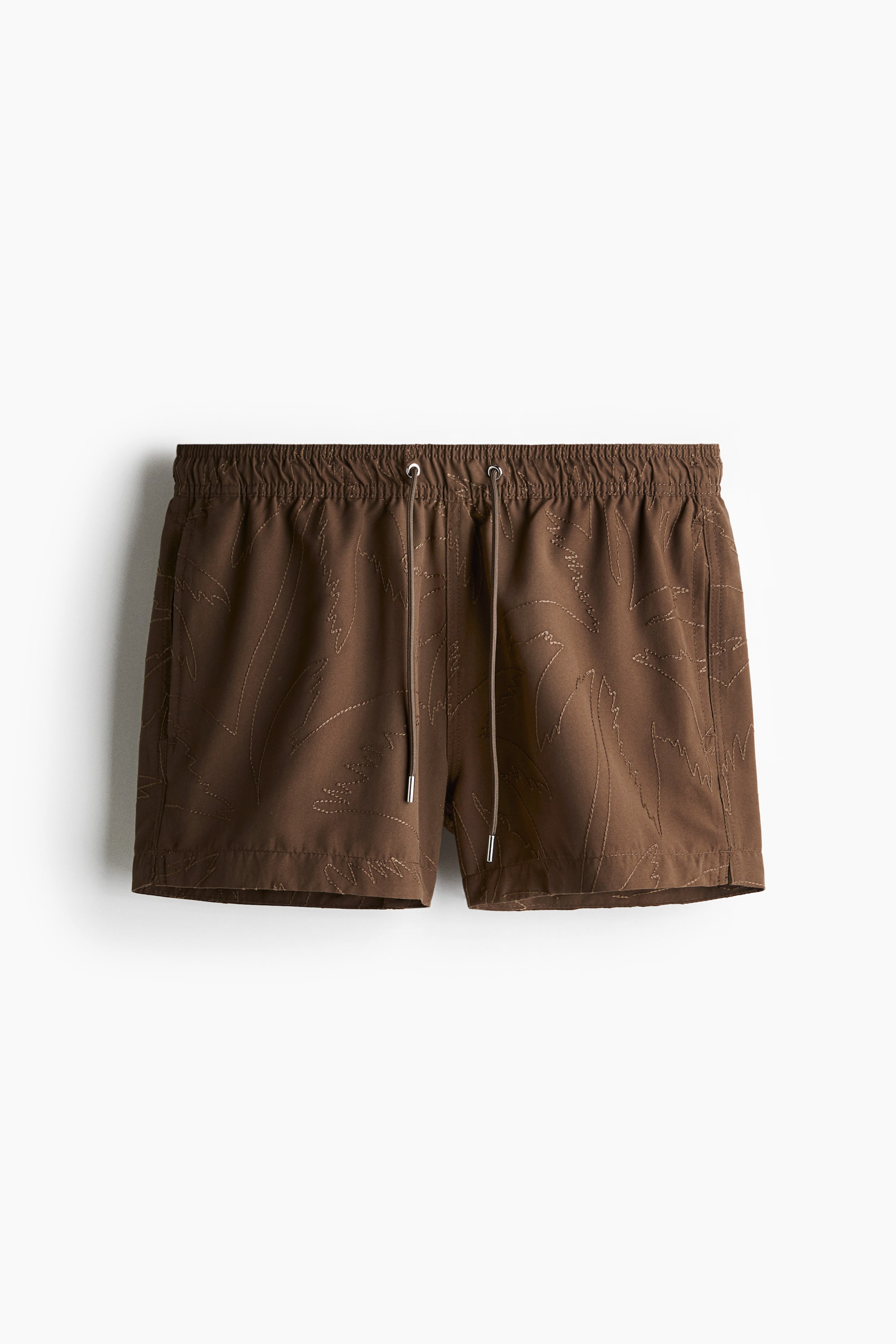 Swim shorts in soft, woven fabric with an embroidered pattern. Drawstring and covered elastic at waistband, side pockets, and a welt back pocket with hook-loop fastening. Legs finishing above knees. Liner shorts in soft mesh.
