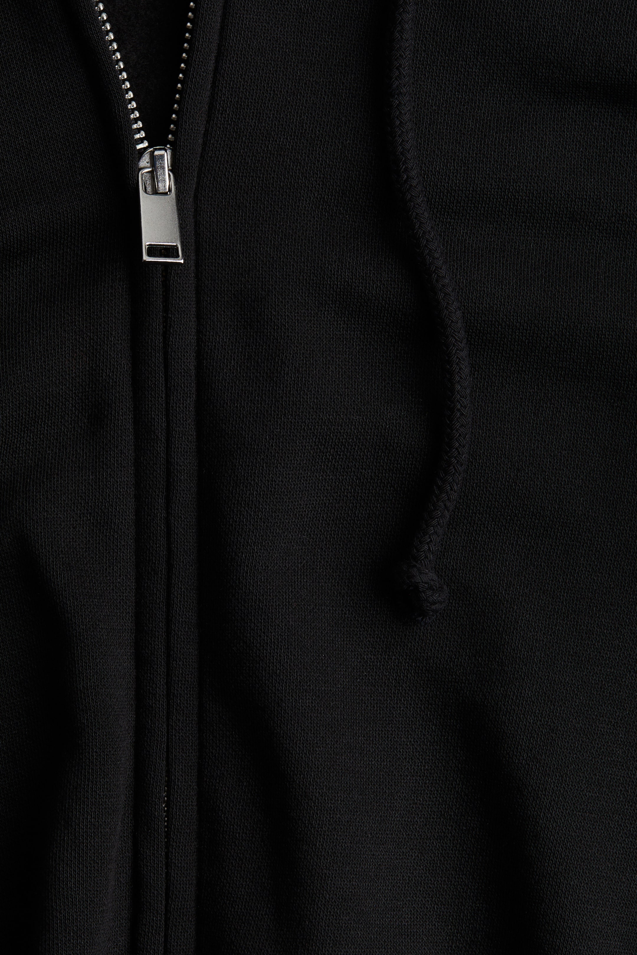 Short, loose-fit sweatshirt jacket with a soft, brushed inside. Jersey-lined, drawstring hood, zipper at front, dropped shoulders, and long sleeves. Ribbing at cuffs and hem.