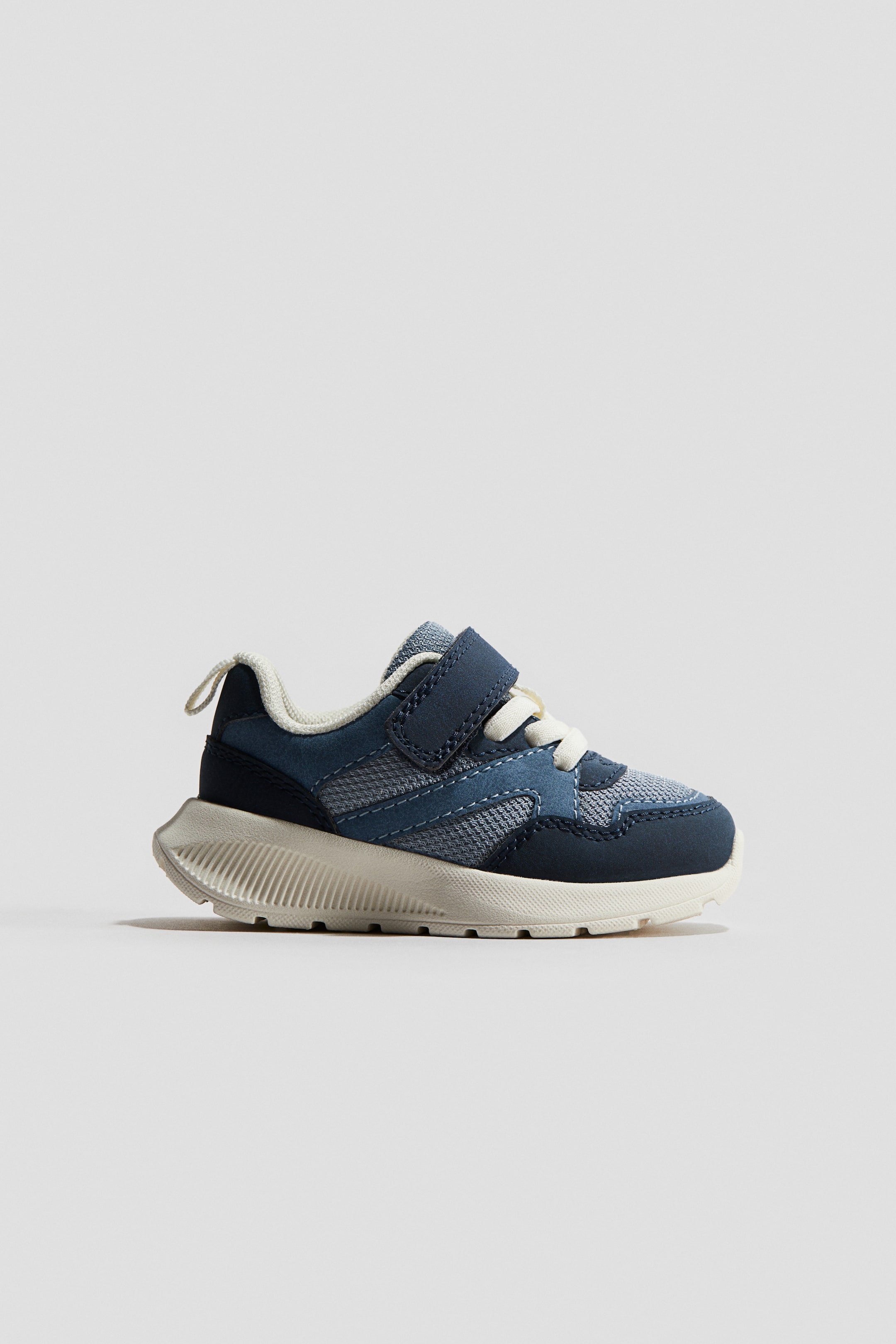 Color-block sneakers in soft mesh with details in napped fabric. Lightly padded edge and tongue, elasticized lacing at front with hook-loop tab at top, and a grosgrain loop at back. Lining in piqué, insoles in technical foam for added comfort, and patterned soles.