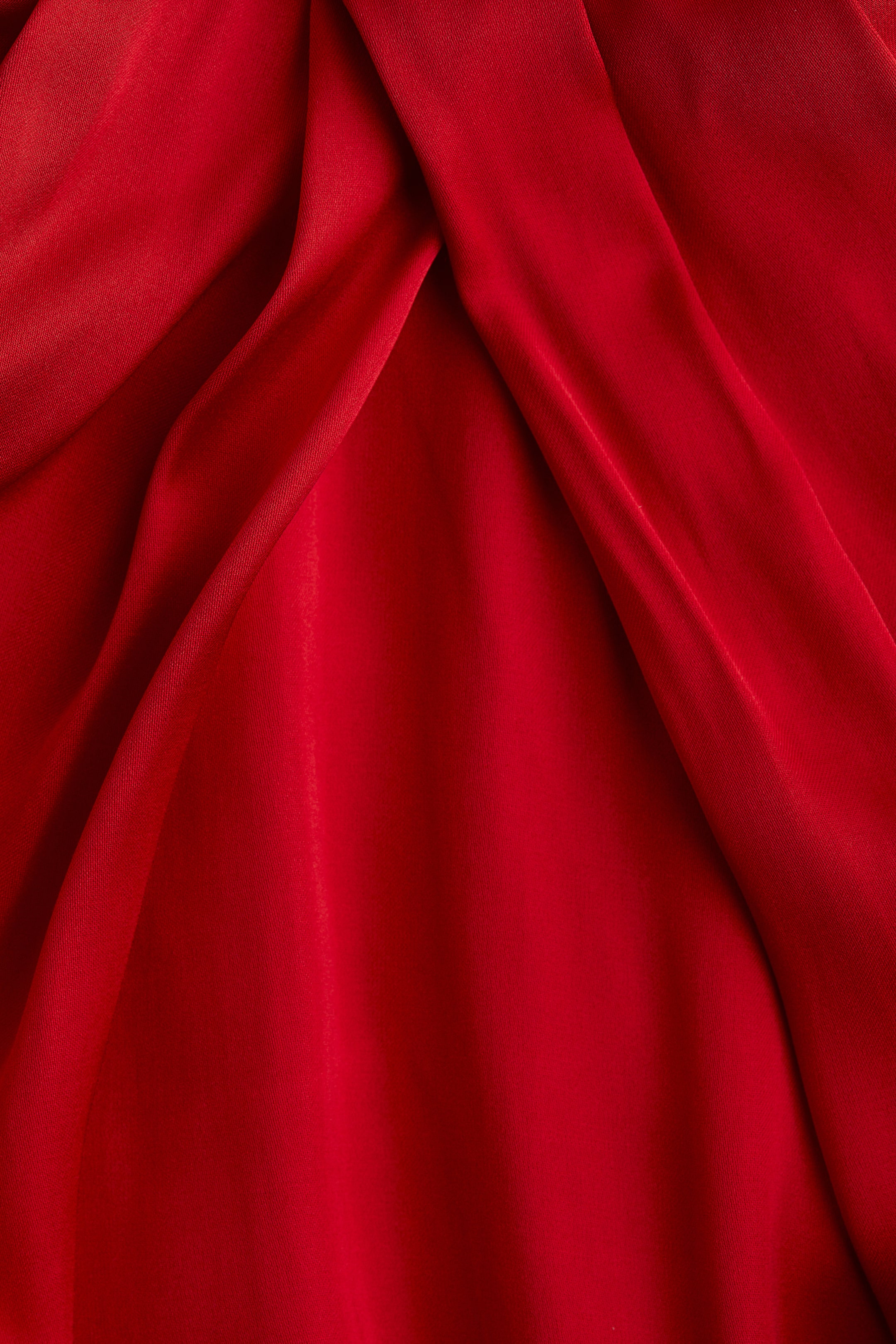 Blouse in softly draped satin. Round neckline, keyhole opening at back with a button, long raglan balloon sleeves, overlapped at front, and wide cuffs with button.