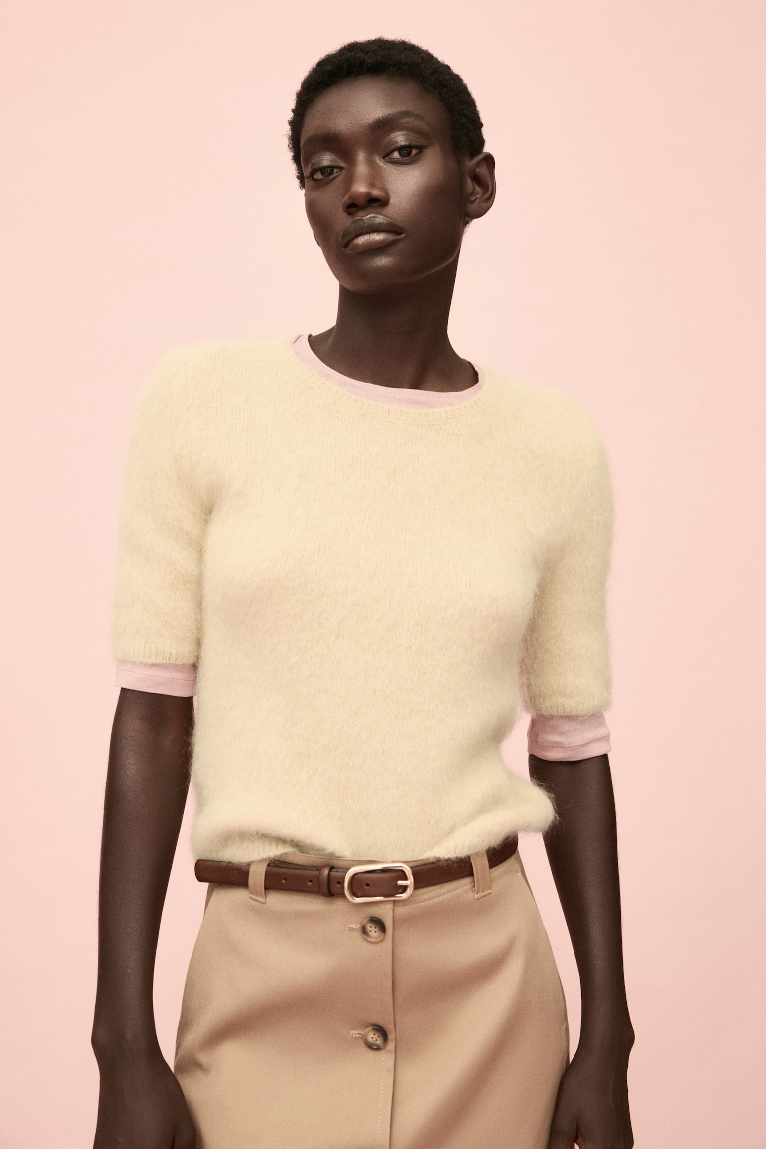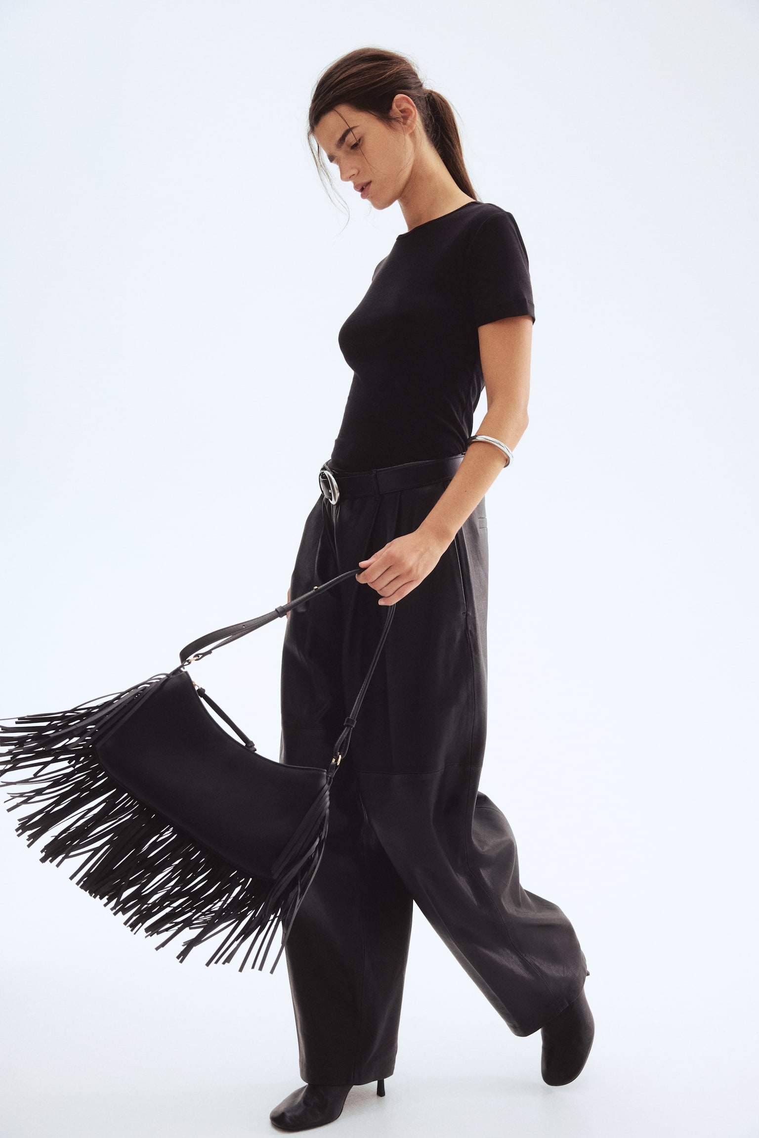 Discover luxury materials and classic silhouettes amongst our collection of premium tops for women. Choose from simple basics as well as statement pieces. Find super soft linen T-shirts in a range of neutral tones to punctuate your outfits. Explore formal silk blouses and unique leather shirts to do the talking. Layer a high quality silk-blend T-shirt or vest underneath one of our jackets with jeans for a timeless fit. Explore our selected premium bottoms to complete your look.