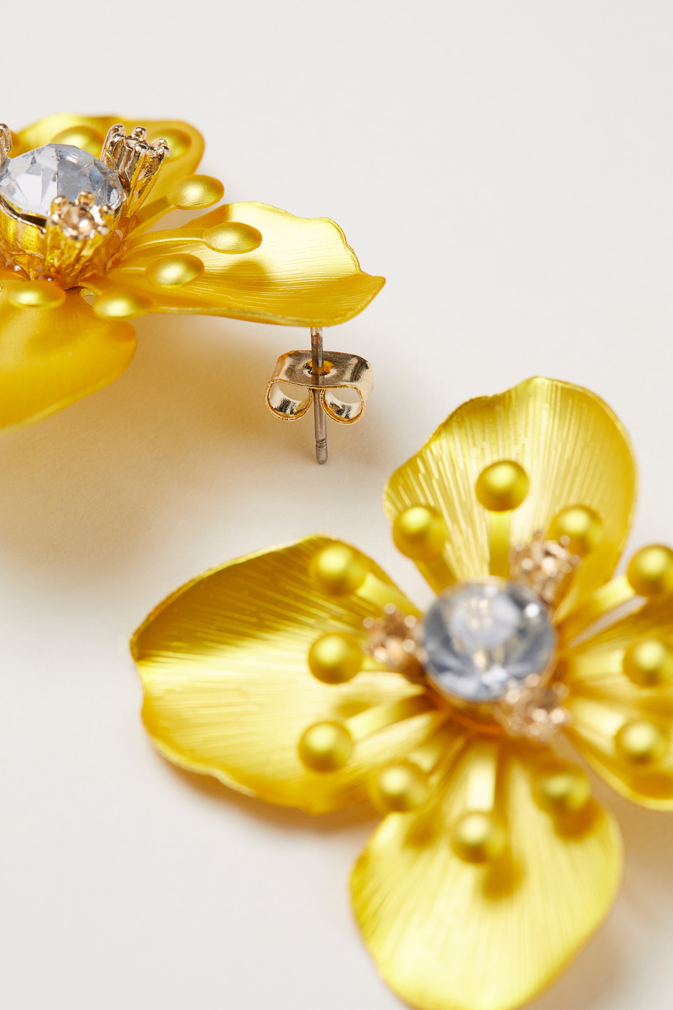 Earrings in coloured metal with a faceted plastic stone. Size approx. 4.5 cm