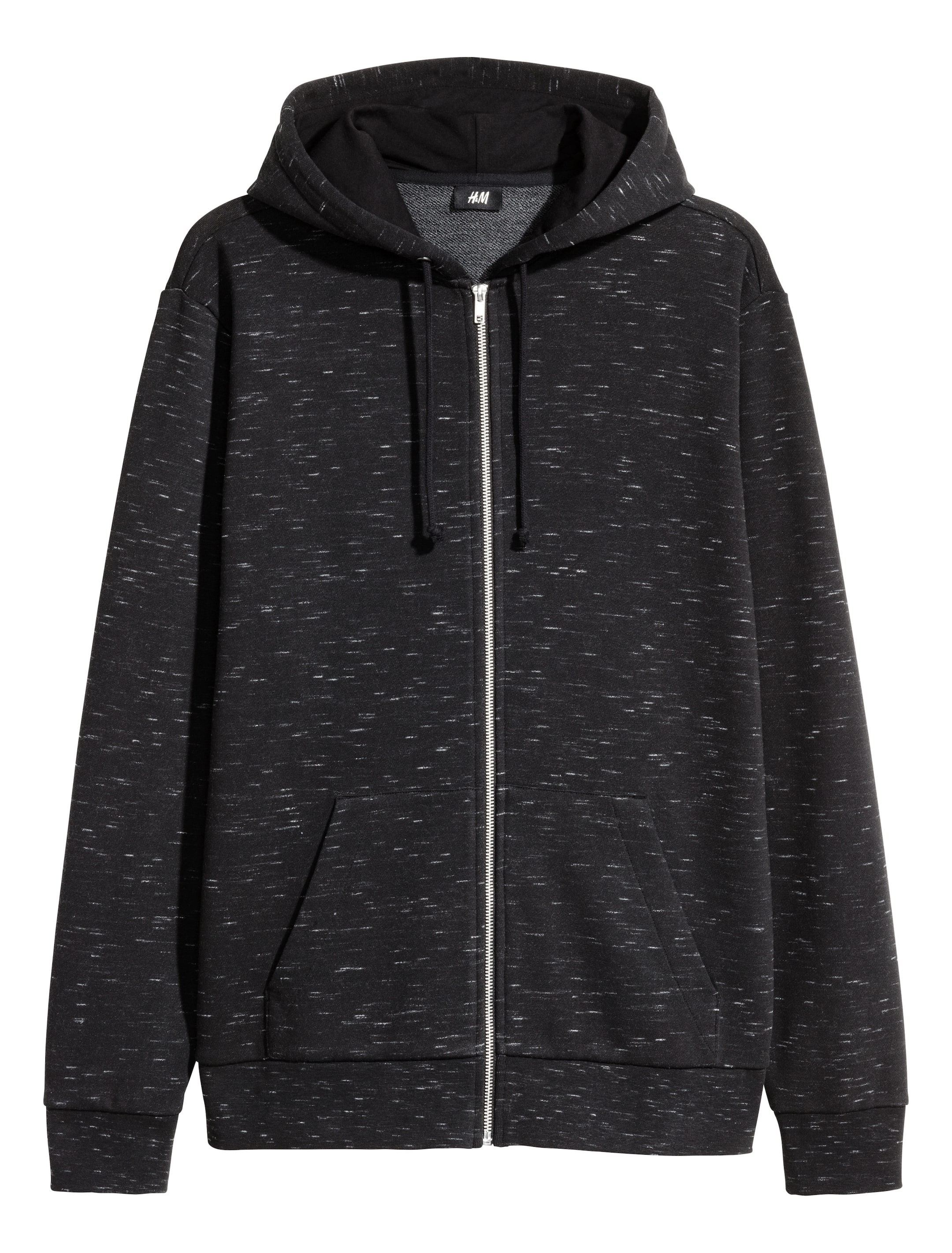 Jacket in sweatshirt fabric with a lined drawstring hood, zip down the front, side pockets and ribbing at the cuffs and hem. Regular fit.
