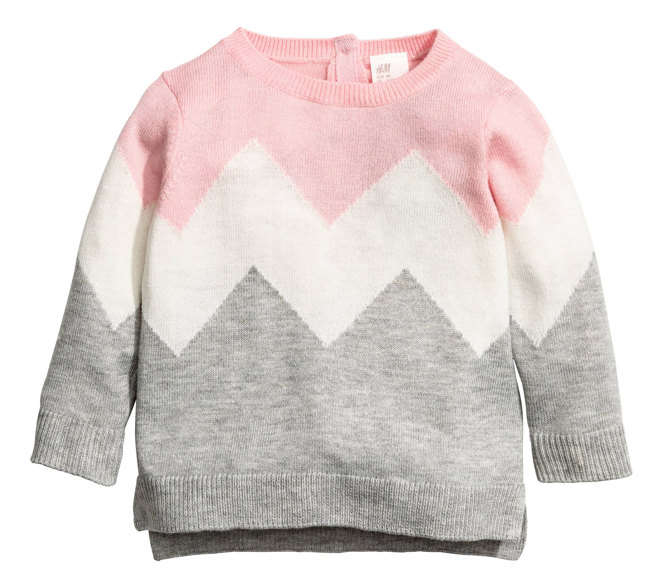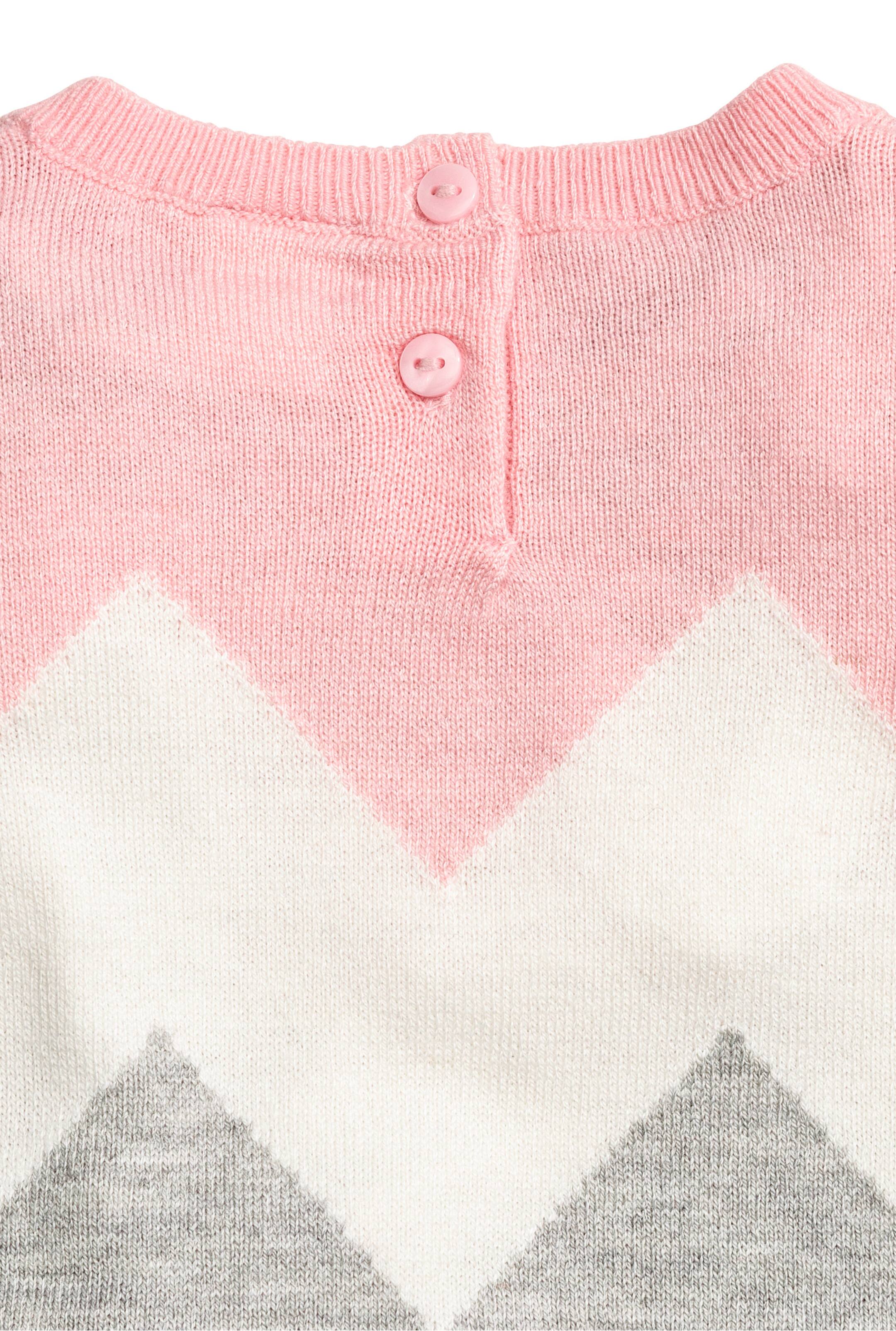Long-sleeved, block-patterned jumper in a soft, fine knit with buttons at the back of the neck and slits in the sides. Slightly longer at the back.