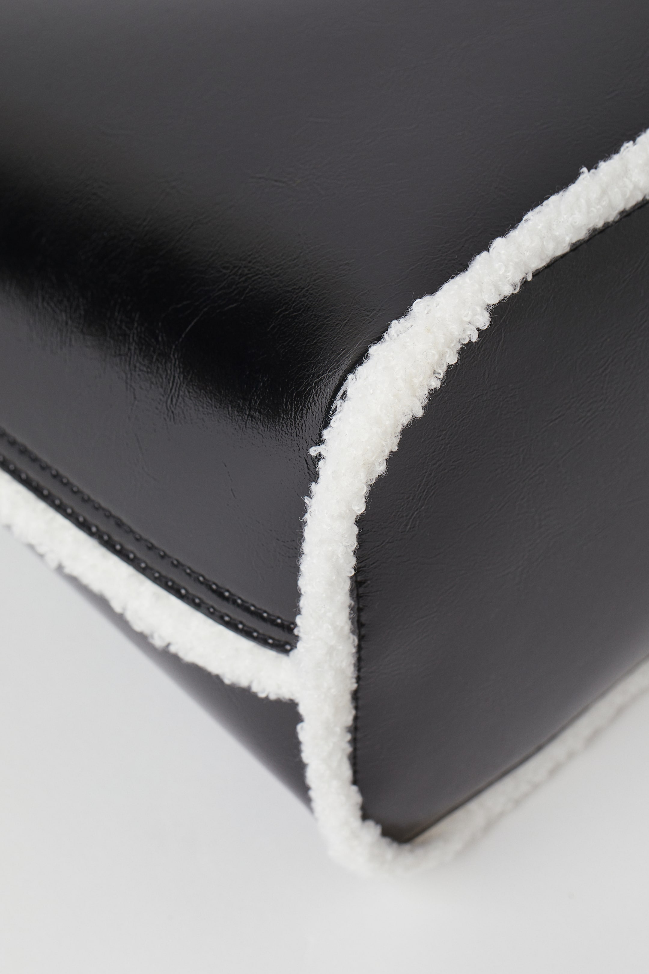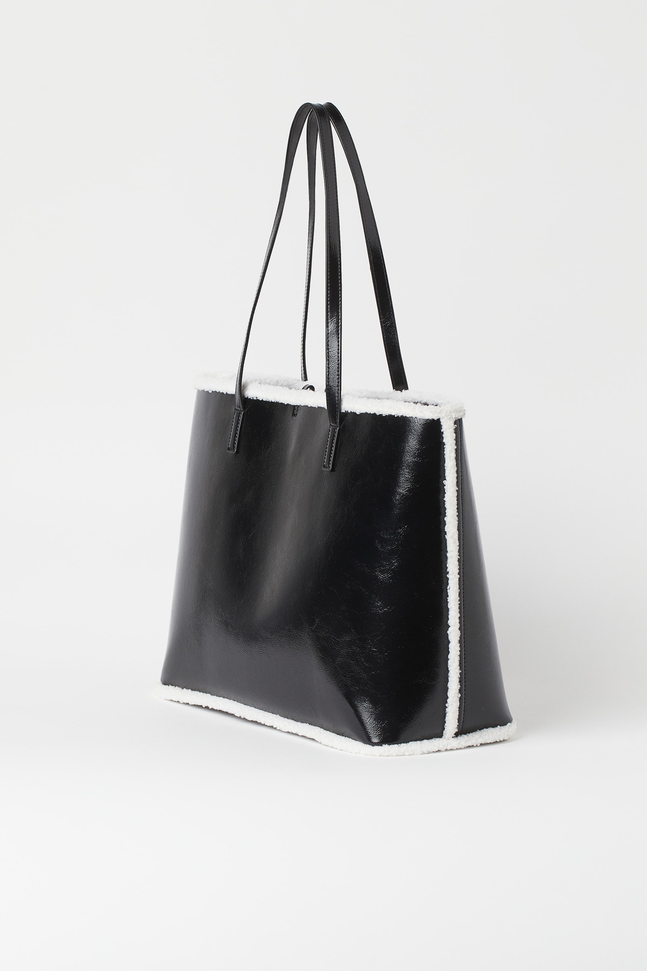 Shopper in coated fabric with a soft napped inside and two handles at the top. Unlined.
