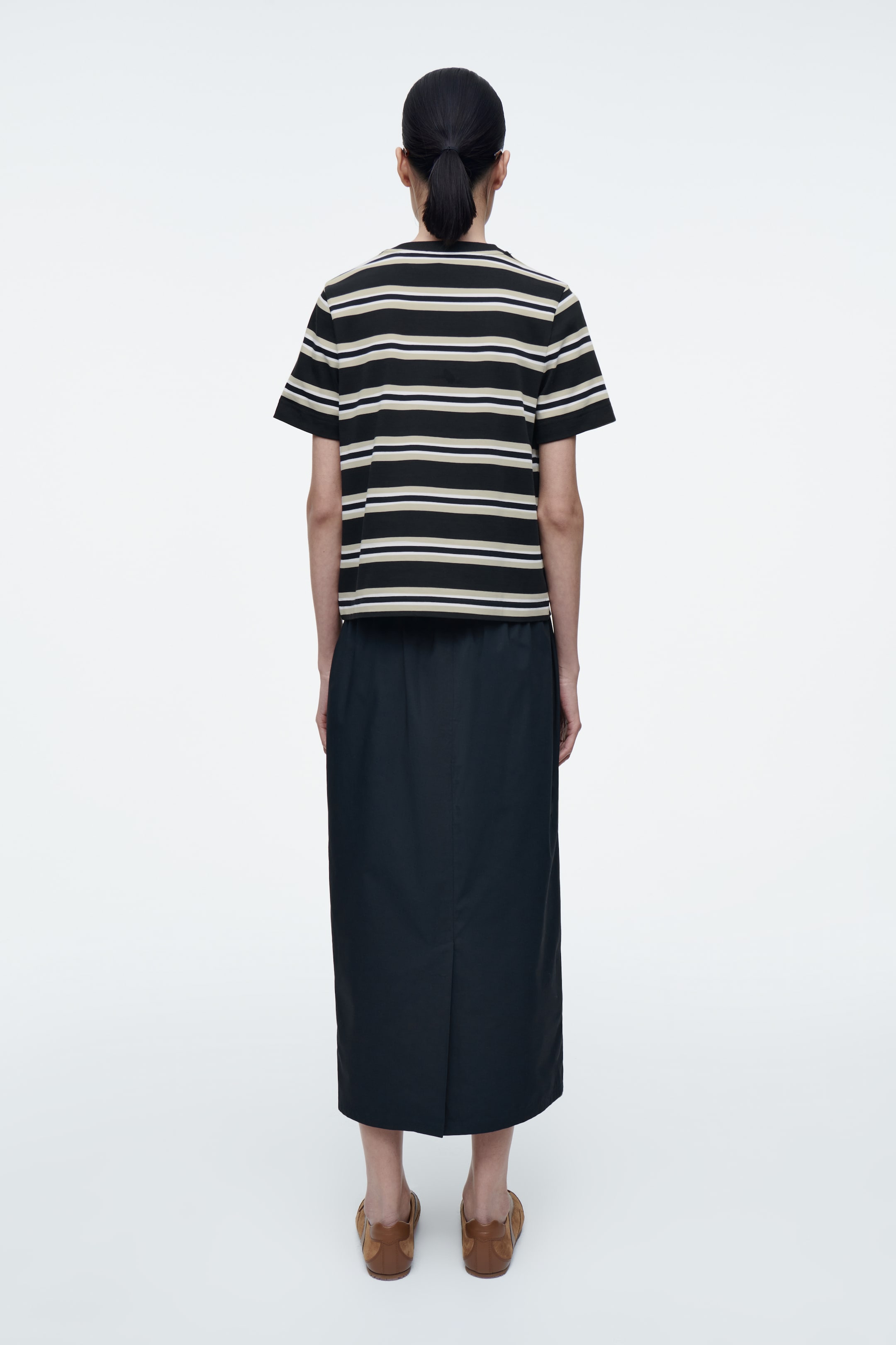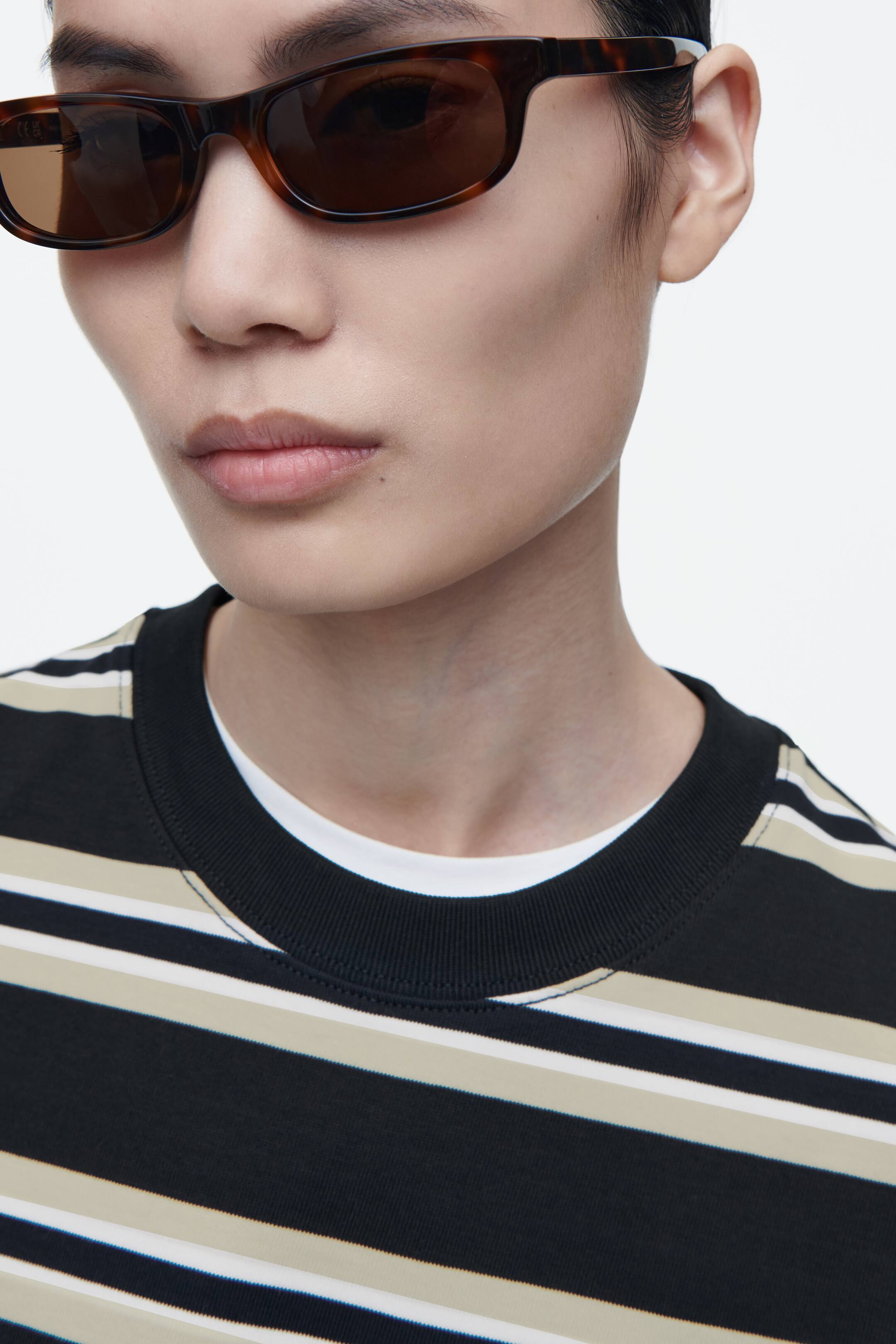 It's hard to overstate the versatility of a classic striped T-shirt. A cornerstone of the COS collection, this one is crafted from premium heavyweight organic-cotton jersey and shaped for a neat fit that has slight definition. Wear it with jeans, mini skirts or leather trousers – just about anything goes. Regular fit, 290gsm Twin-stitched sleeves Organic cotton is grown from non-genetically modified seeds without chemical fertilisers or pesticides Shell: 100% Organic cotton. Excluding trims / Machine wash Back length of size S is 54.2cm / Model wears a size S