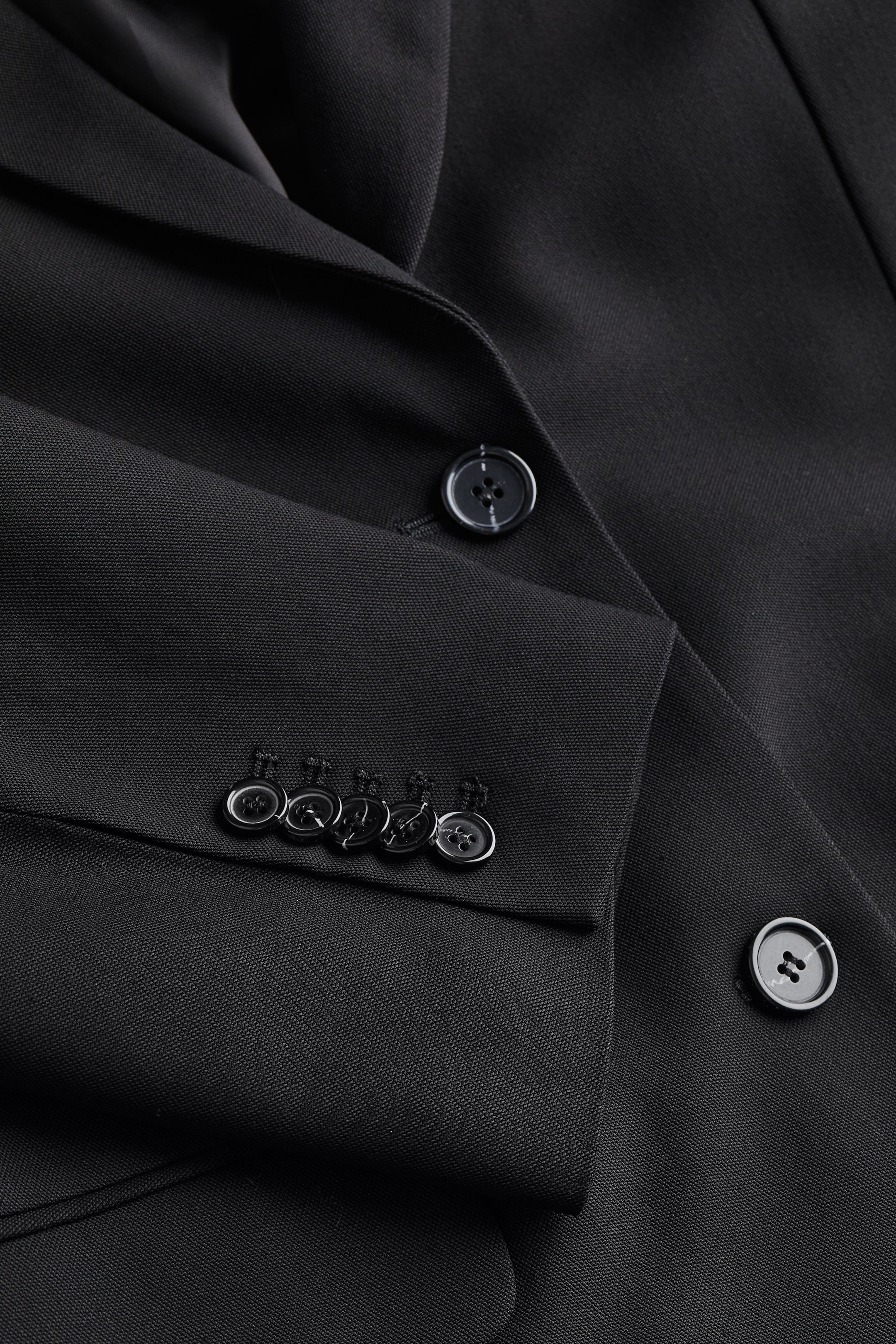 Single-breasted jacket in a woven wool blend with notch lapels and buttons down the front. Chest pocket, jetted front pockets with a flap, and an inner pocket. Dropped shoulders with shoulder pads, and long sleeves with buttoned cuffs. Lined.