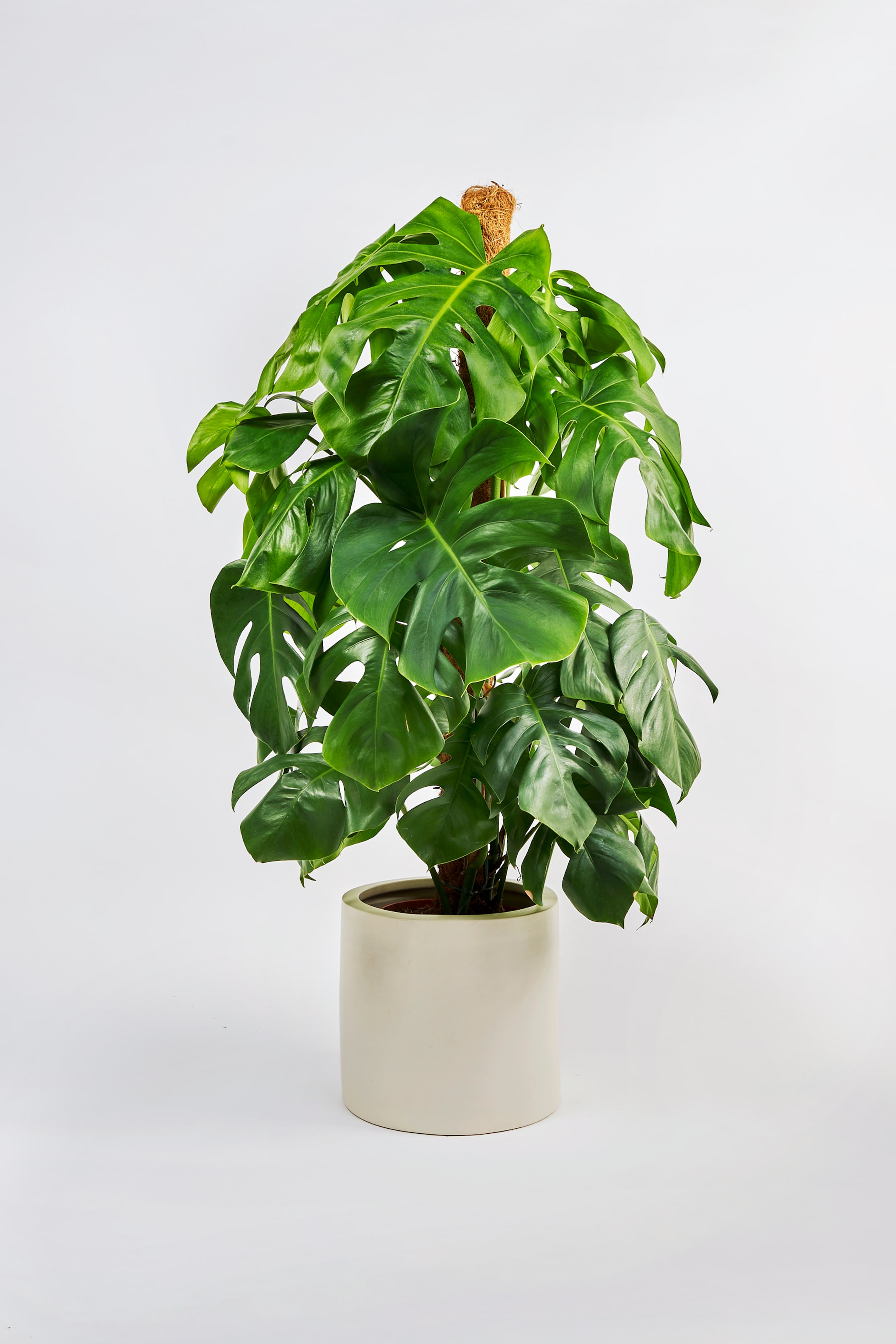 Could these be the most famous leaves on a houseplant? The Swiss Cheese Plant is best known for its beautiful, big, holey leaves and will make a statement in any room. The reason for the holes? In its natural habitat it grows in the crevices of trees and purposely produces the holes in its foilage so that the leaves at the bottom can get light - genius! It’s a fast-grower, so give it some space to spread its leaves and remember to rotate it regularly to ensure even growth. This plant measures W24cm x H110-120cm and comes on a moss pole for support. Keep it out of reach of furry friends and little people. Does not include decorative pot.