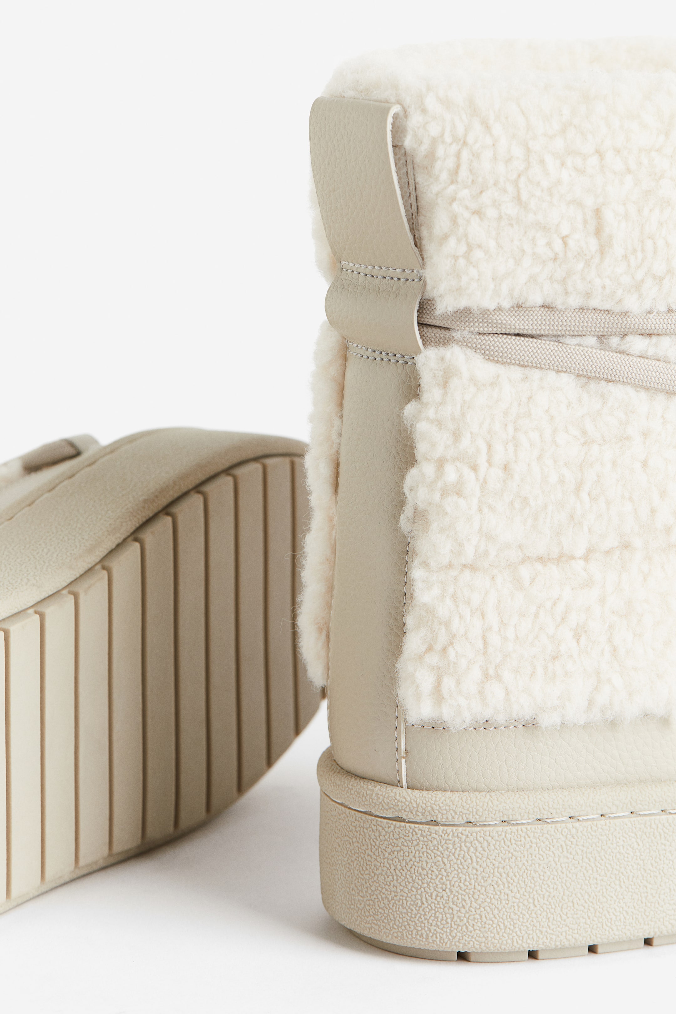 Boots in soft teddy featuring an ankle-high shaft with lacing at the front and a loop at the back. Linings and insoles in soft, fluffy fabric to keep your feet warm. Fluted soles. Height of soles 4 cm.