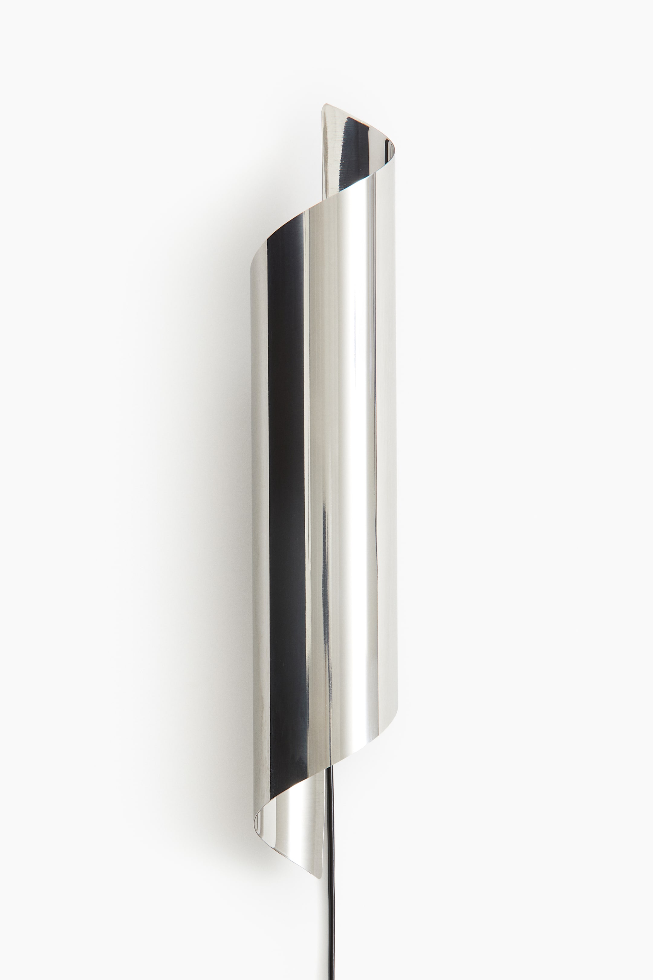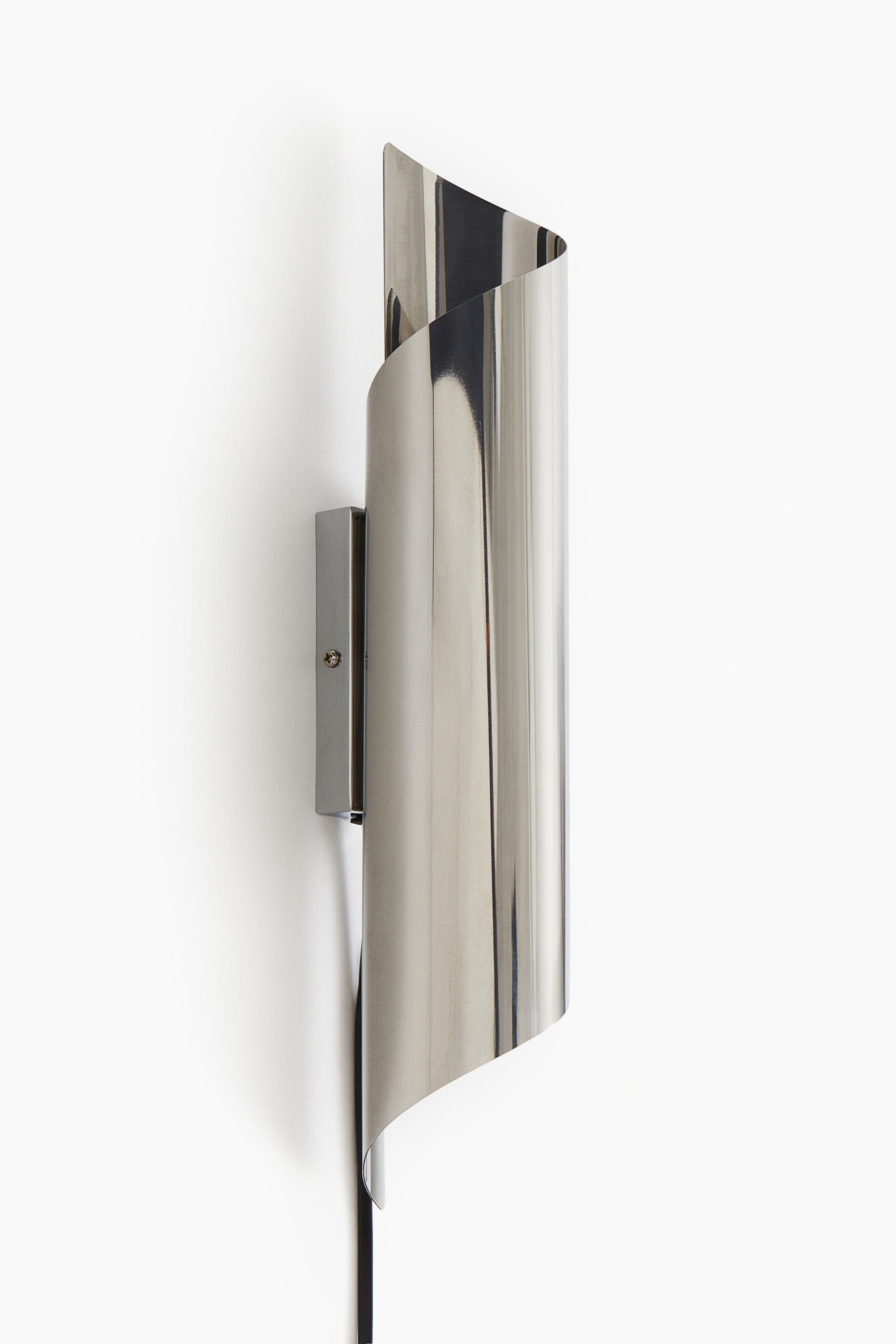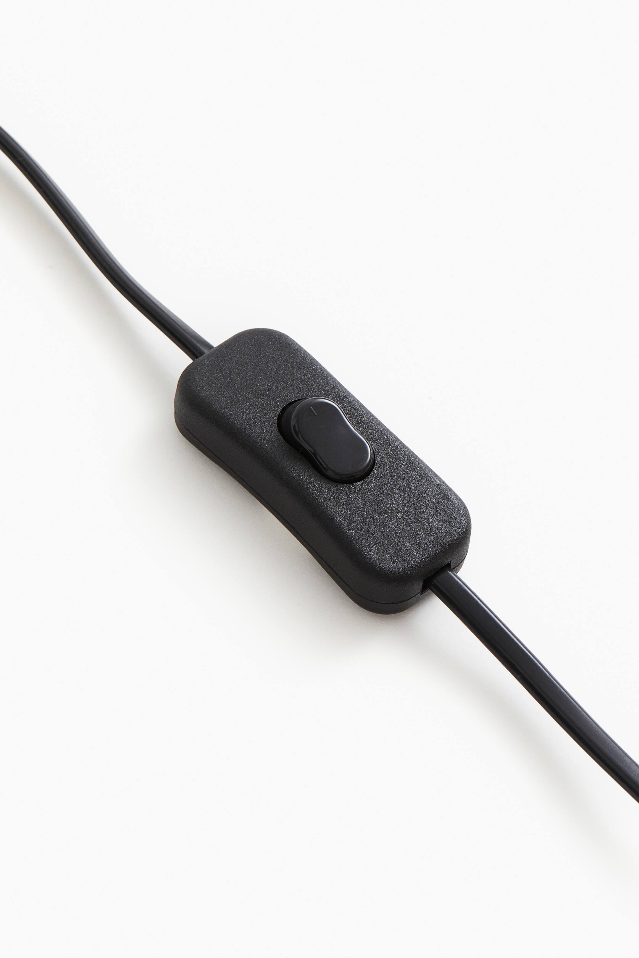 Metal wall lamp in a twisted design. Fabric-covered cord with a plastic switch. E14 bulb holder. Max 6 W LED. Bulbs not included. Length of cord 183 cm. Width 7.6 cm. Height 40.6 cm.